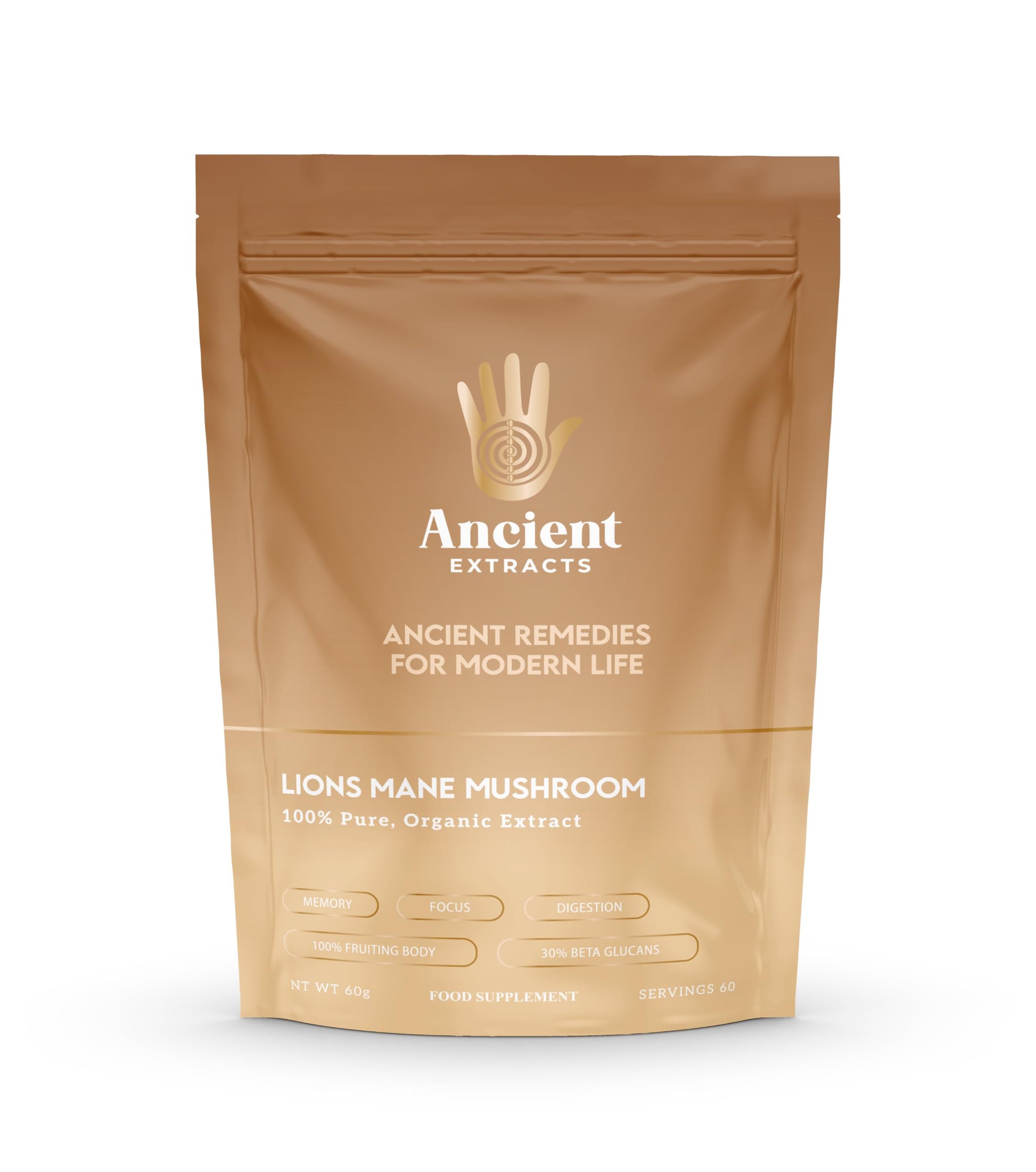Ancient Extracts Lions Mane Mushroom Extract Powder - 2000mg Servings - GMO Free, Gluten Free, Vegan - Cognitive Function, Focus, Digestive Support - Superfood, Nootropic (60g)