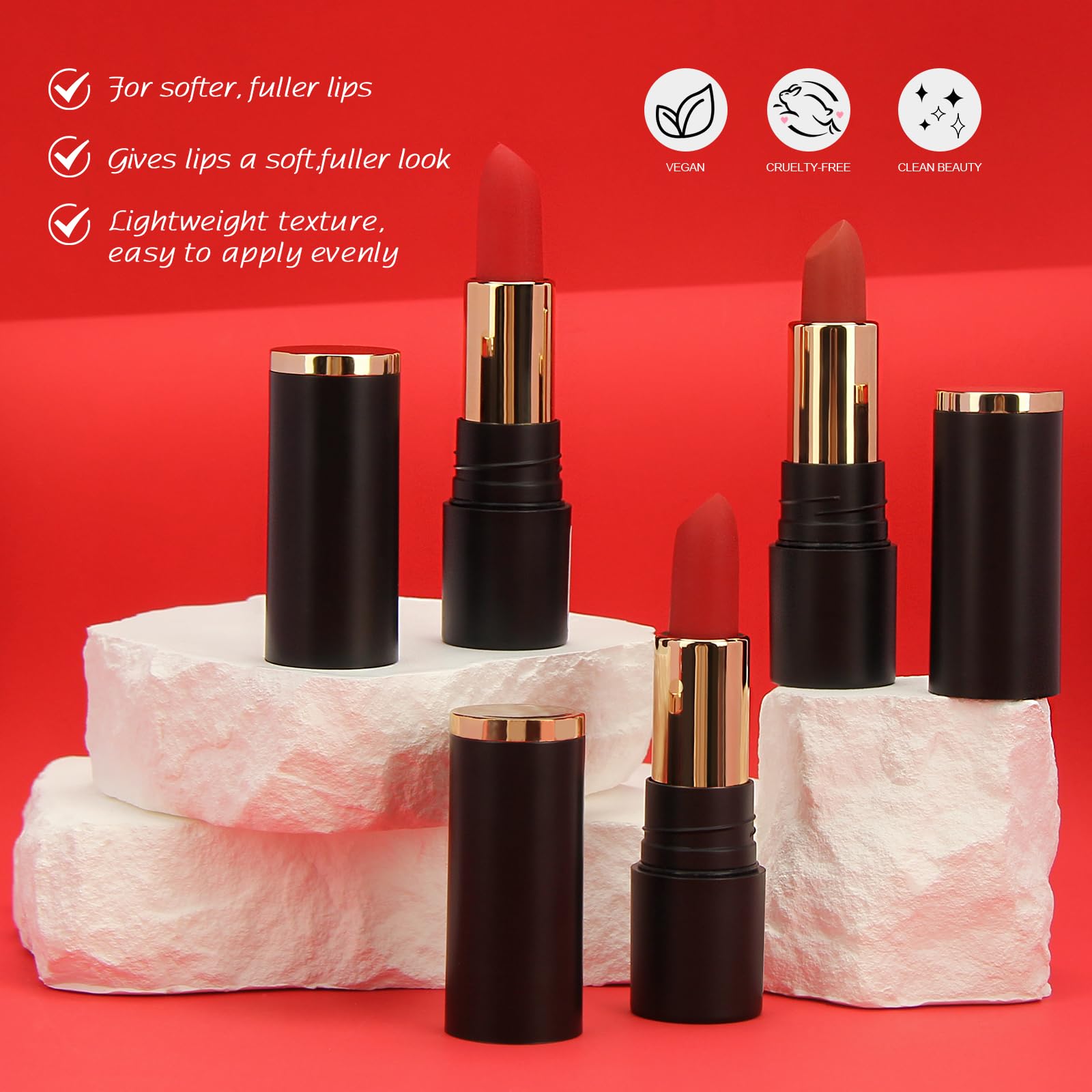 Anglicolor 4PCS Red Lipstick, Matte Lipstick, 24 Hour Lipstick, Waterproof, High Coverage, Rich and Radiant Colour, Vegan & Cruelty-Free (4PCS, 15.2g)