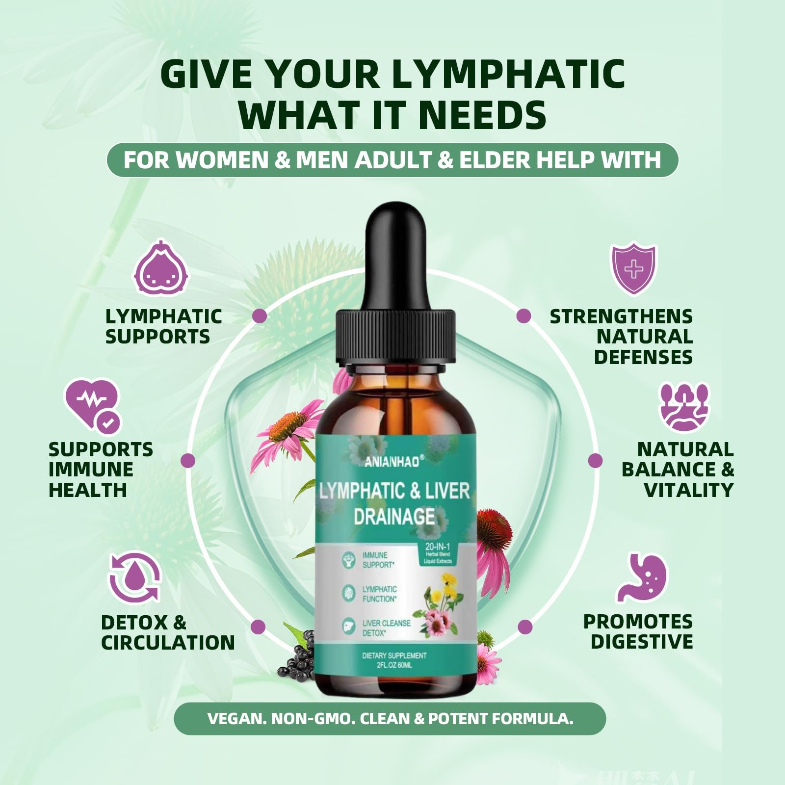 ANIANHAO Lymph System Support Supplement, Lymph Cleanse Detox, Liposomal Artichoke Lymphatic Drainage & Liver Repair Supplement with All Vitamins, 60ml