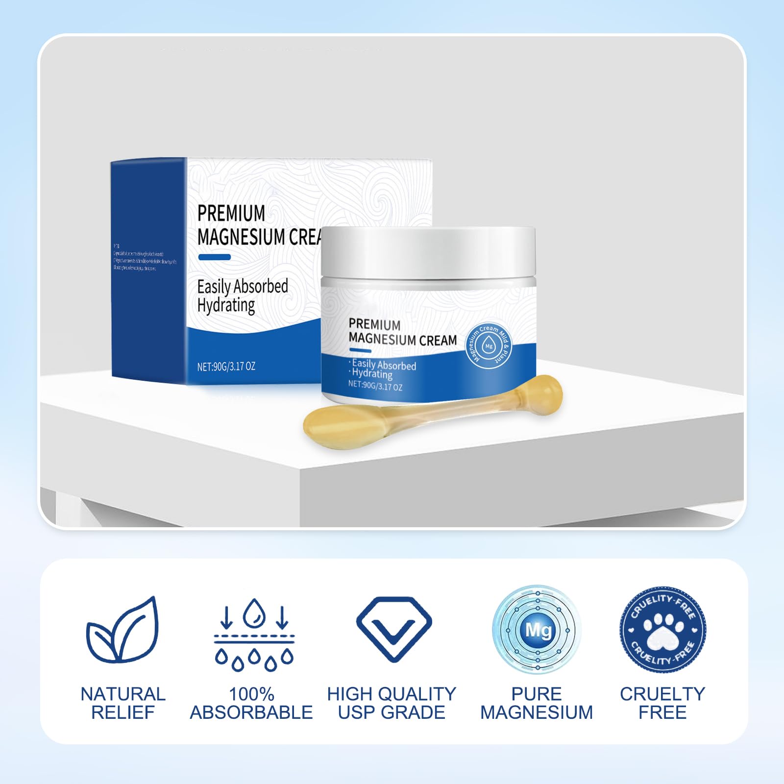 Package content: 1 bottle of magnesium foot cream + 1 massage spoon