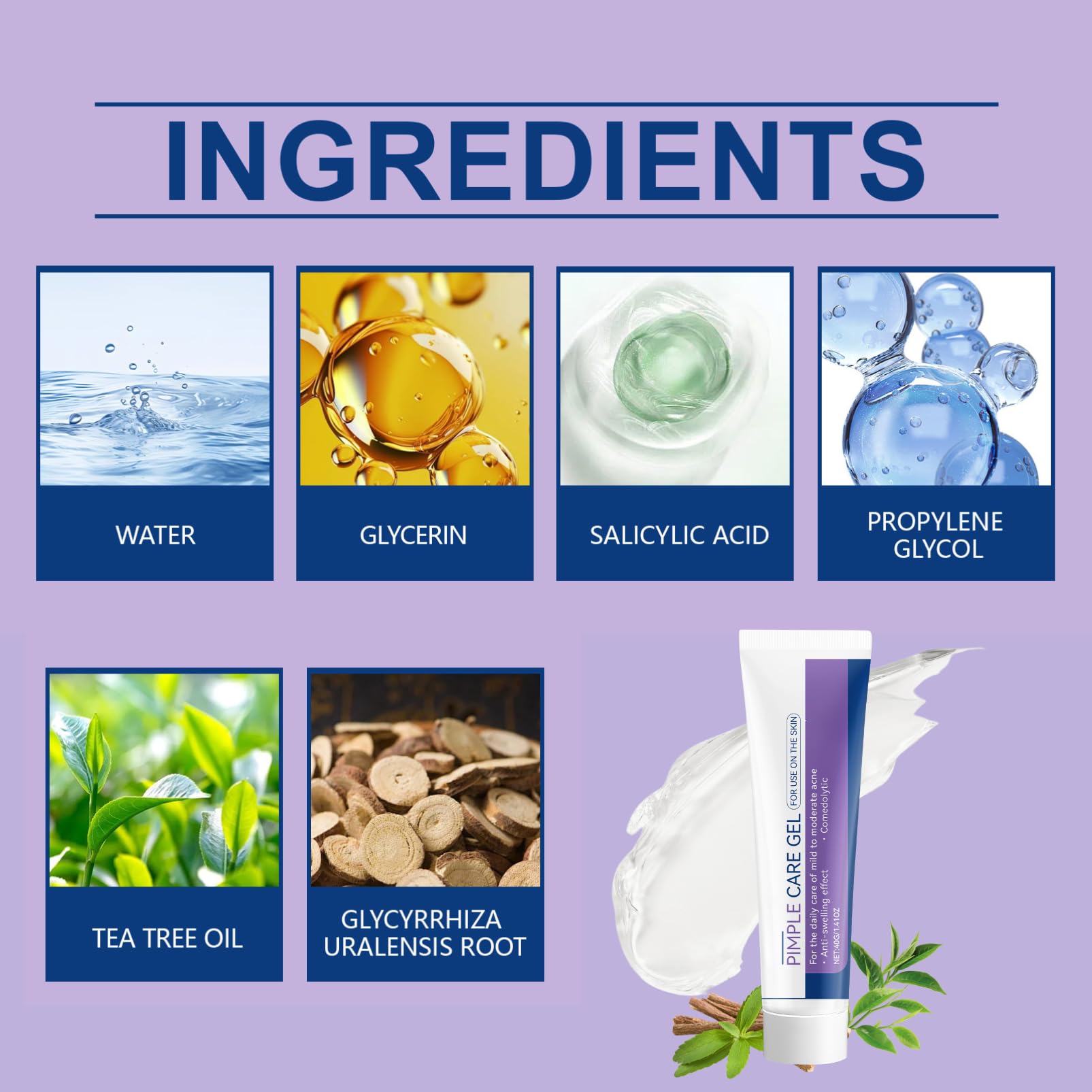Anti Acne Gel for Face - Face Spot Treatment - Pimple Removal Gel with Tea Tree Oil,Salicylic Acid - Deep Pore Cleansing, Targets Acne, Blackheads & Blemishes, Hydrating Formula 40g
