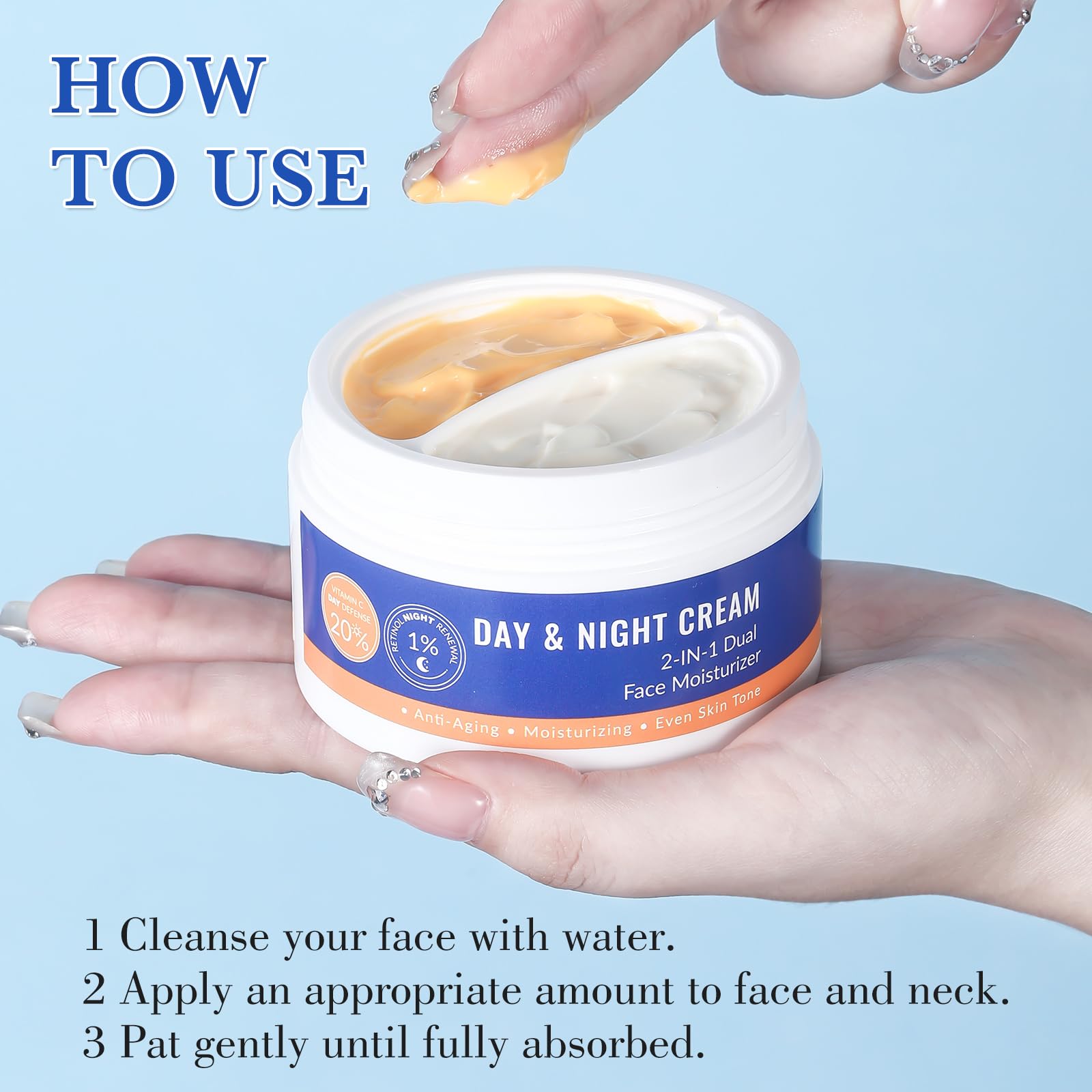 Day & Night Face Cream, 20% Vitamin C Day Cream and 1% Retinol Night Renewal, 2-In-1 Dual Face Moisturizer for Women, Men 3.53oz/100gMore Info