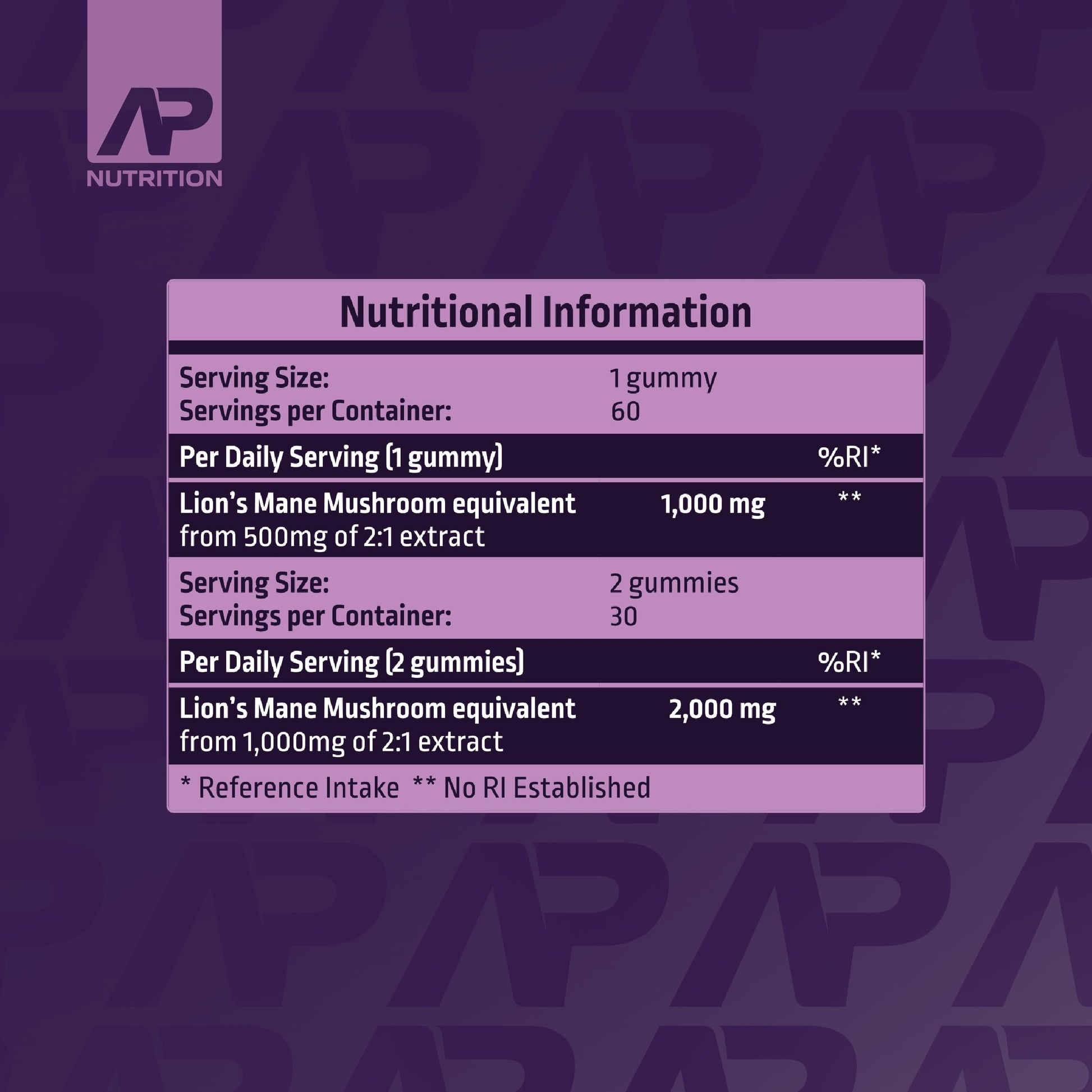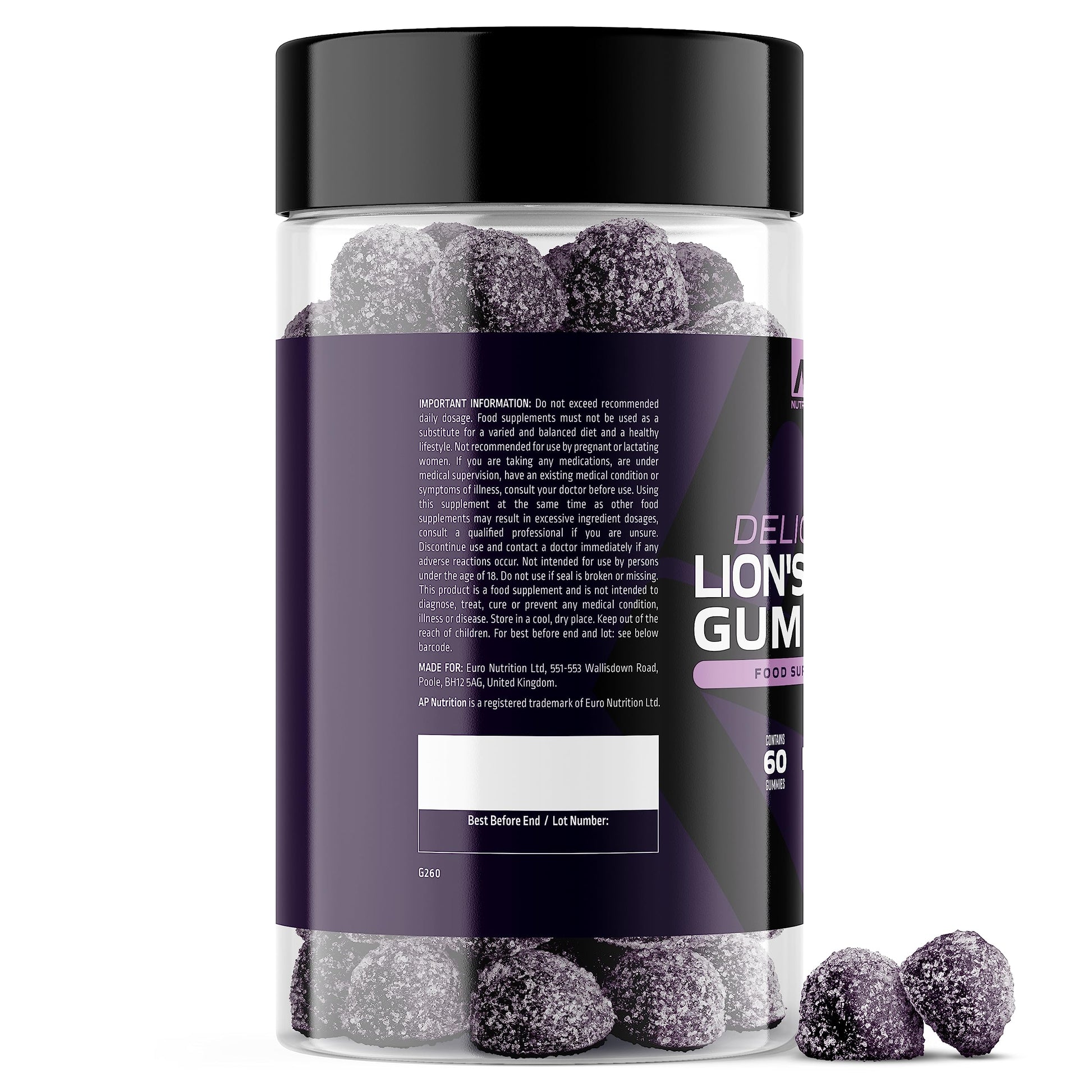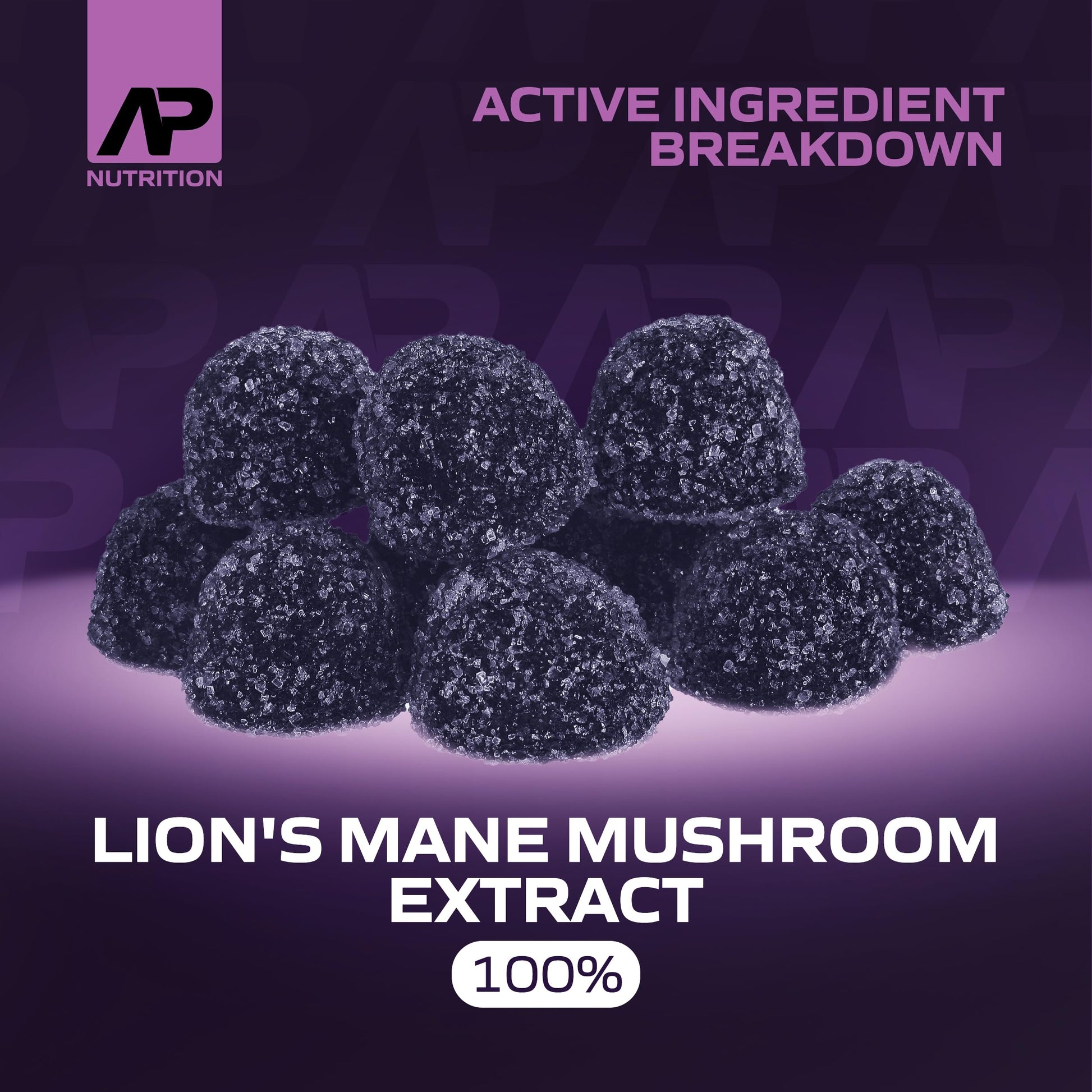 AP Nutrition Lions Mane Gummies - 1000mg Lions Mane Mushroom Gummies - Delicious Mixed Berry Flavour Mushroom Supplement (60 Vegan Gummies)