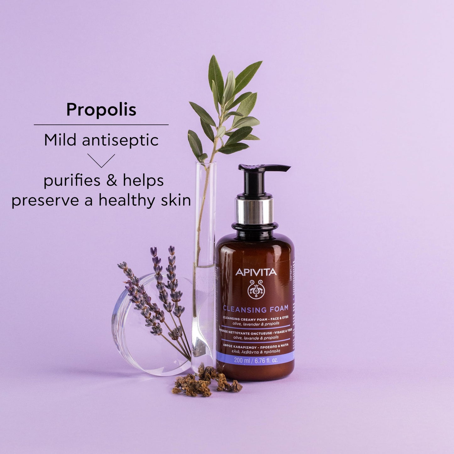- EFFICIENT & GENTLE CLEANSING: Cleansing creamy foam with olive, lavender & propolis that effectively cleanses the face and eyes without causing dryness. Soothes and offers skin comfort and antioxidant protection. Leaves skin soft and clean.