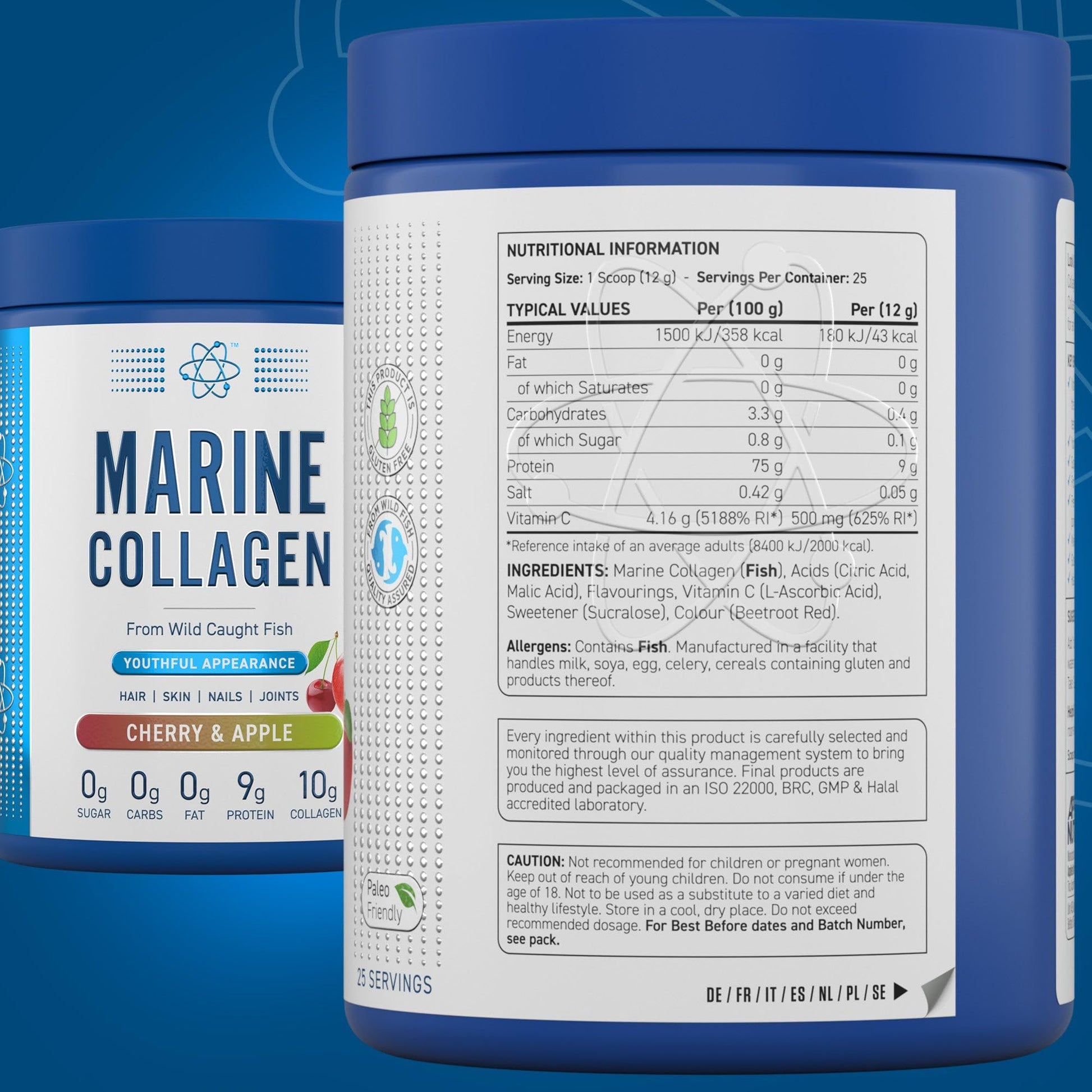 Applied Nutrition Marine Collagen Powder - Hydrolysed Collagen Protein, Healthy Skin, Hair, Nails (Cherry & Apple) (300g - 25 Servings)