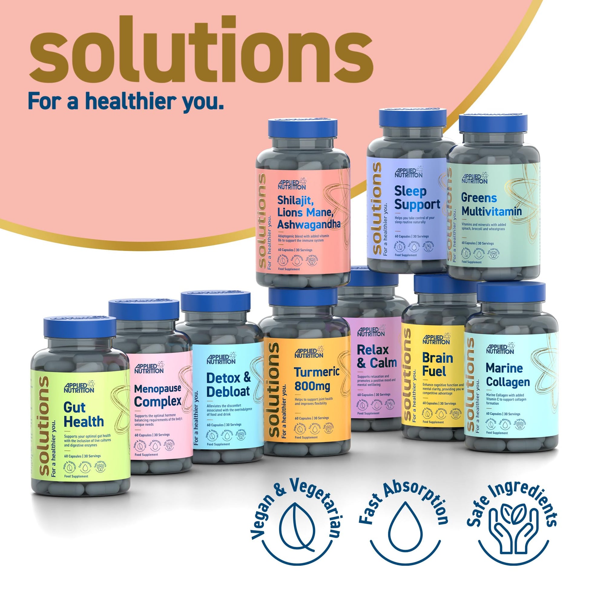 Applied Nutrition - Solutions - Shilajit, Lion’s Mane & Ashwagandha - High Strength Nootropic & Adaptogen Blend - Mental Clarity, Stress & Energy Support - 60 Capsules - 30 Servings