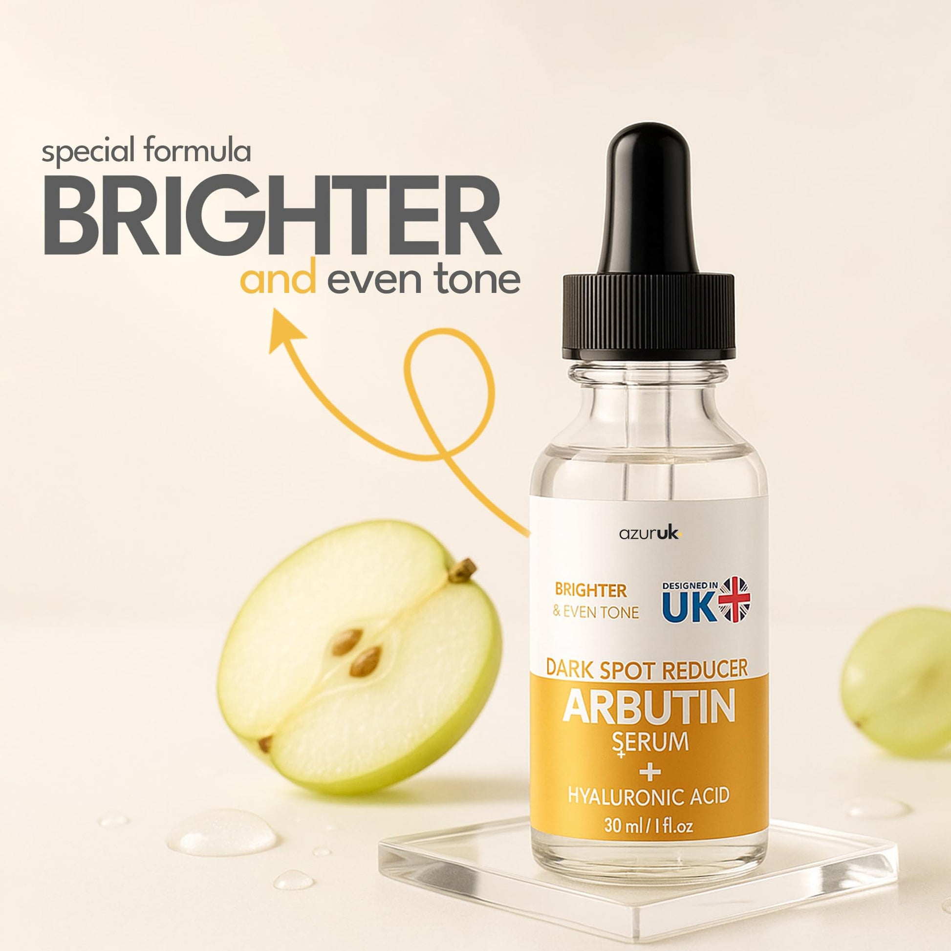 REDUCES DARK SPOTS & HYPERPIGMENTATION - Formulated with arbutin to visibly fade dark spots, acne scars, and discoloration for a more even skin tone BRIGHTENS & EVENS SKIN TONE - Helps improve dullness and promote a radiant, glowing complexion EXTRA HYALURONIC ACID - AzurUK arbutin serum is infused with hyaluronic acid to deeply moisturize and enhance skin elasticity. ANTIOXIDANT PROTECTION - Helps defend against environmental stressors, reducing premature aging and dullness.More Info