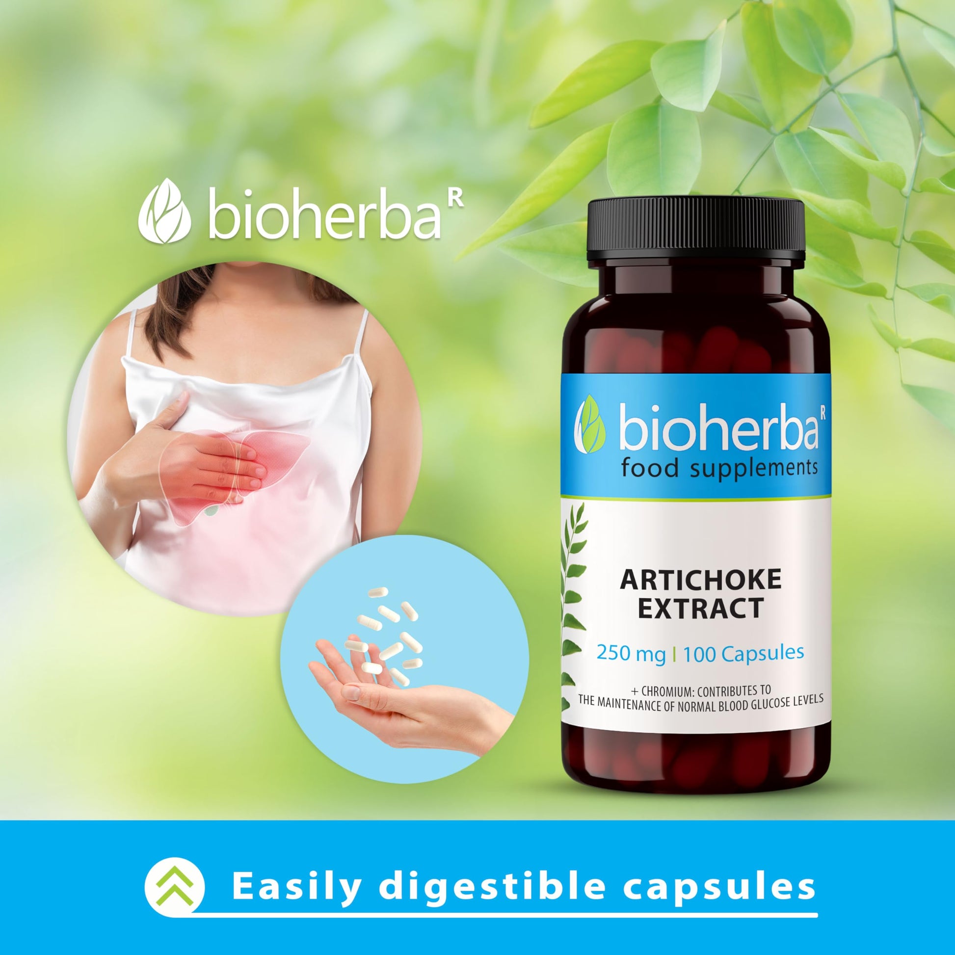 Discover the Benefits of BIOHERBA Artichoke 250 mg - 100 Capsules Experience the power of this potent supplement designed to support liver health and digestive function. Our artichoke extract is derived from high-quality artichokes, known for their therapeutic properties and rich nutrient profile. Origin and History Artichokes (Cynara scolymus) have a long history of use in traditional practices dating back to ancient Greece and Rome. They were valued for their ability to promote liver and digestive health. Native to the Mediterranean region, artichokes were considered a luxury food. Benefits BIOHERBA Artichoke Capsules are rich in essential nutrients that offer numerous health benefits: Liver Health: Artichoke extract is known for its liver-protective properties. It helps detoxify the liver, supports its regenerative capacity, and improves overall liver function. Digestive Support: The natural compounds in artichokes promote digestion by stimulating bile production, which is crucial for breaking down fats and improving nutrient absorption. Rich in Antioxidants: Artichokes are high in antioxidants such as cynarin and silymarin, which help combat oxidative stress and protect the body from free radicals. Nutrient-Rich: This supplement is a good source of vitamins and minerals like Vitamin C, Vitamin K, folic acid, and magnesium, contributing to overall health and well-being. Natural Detoxification: Artichokes support the body's natural detoxification processes, promoting a healthy digestive tract and reducing bloating and discomfort.More Info