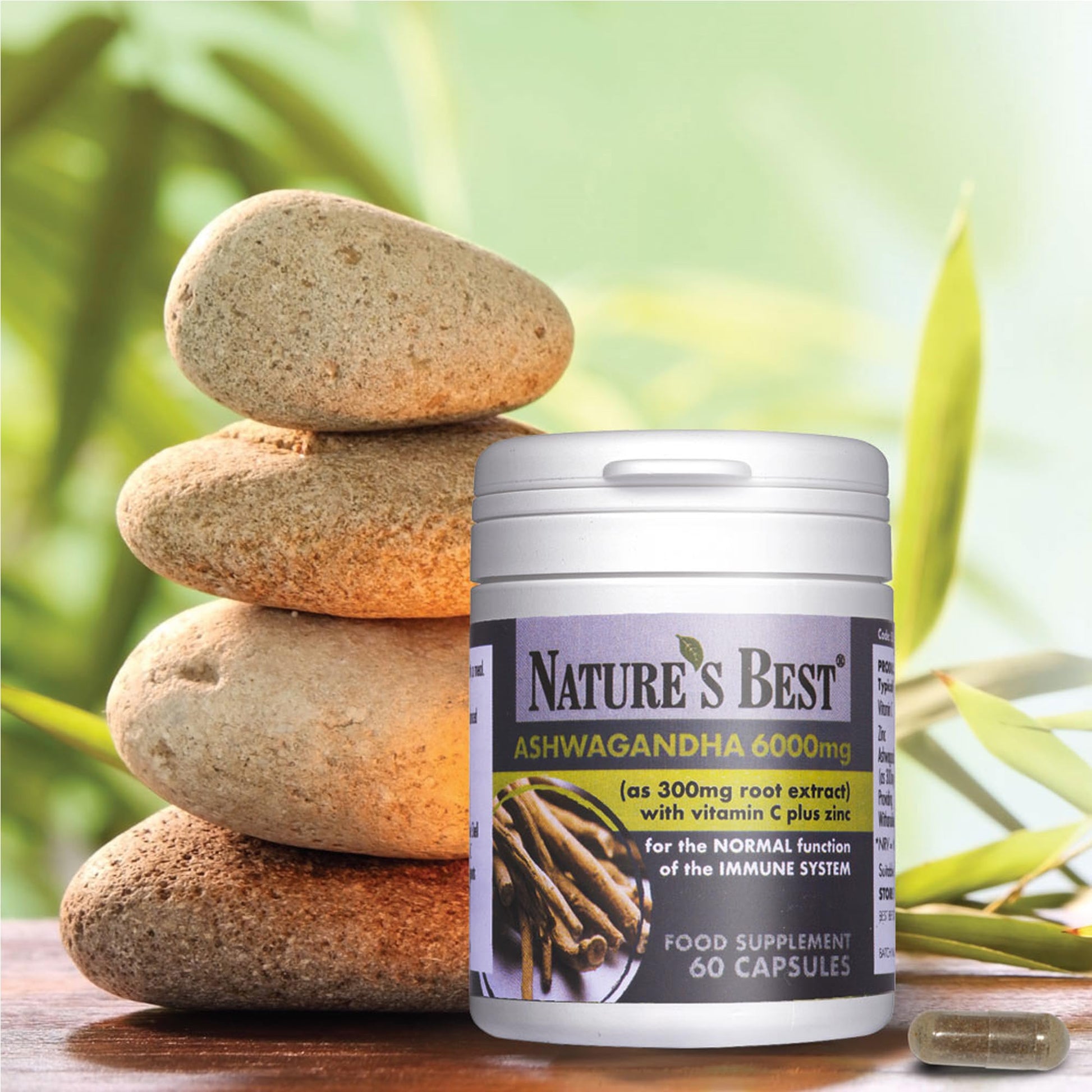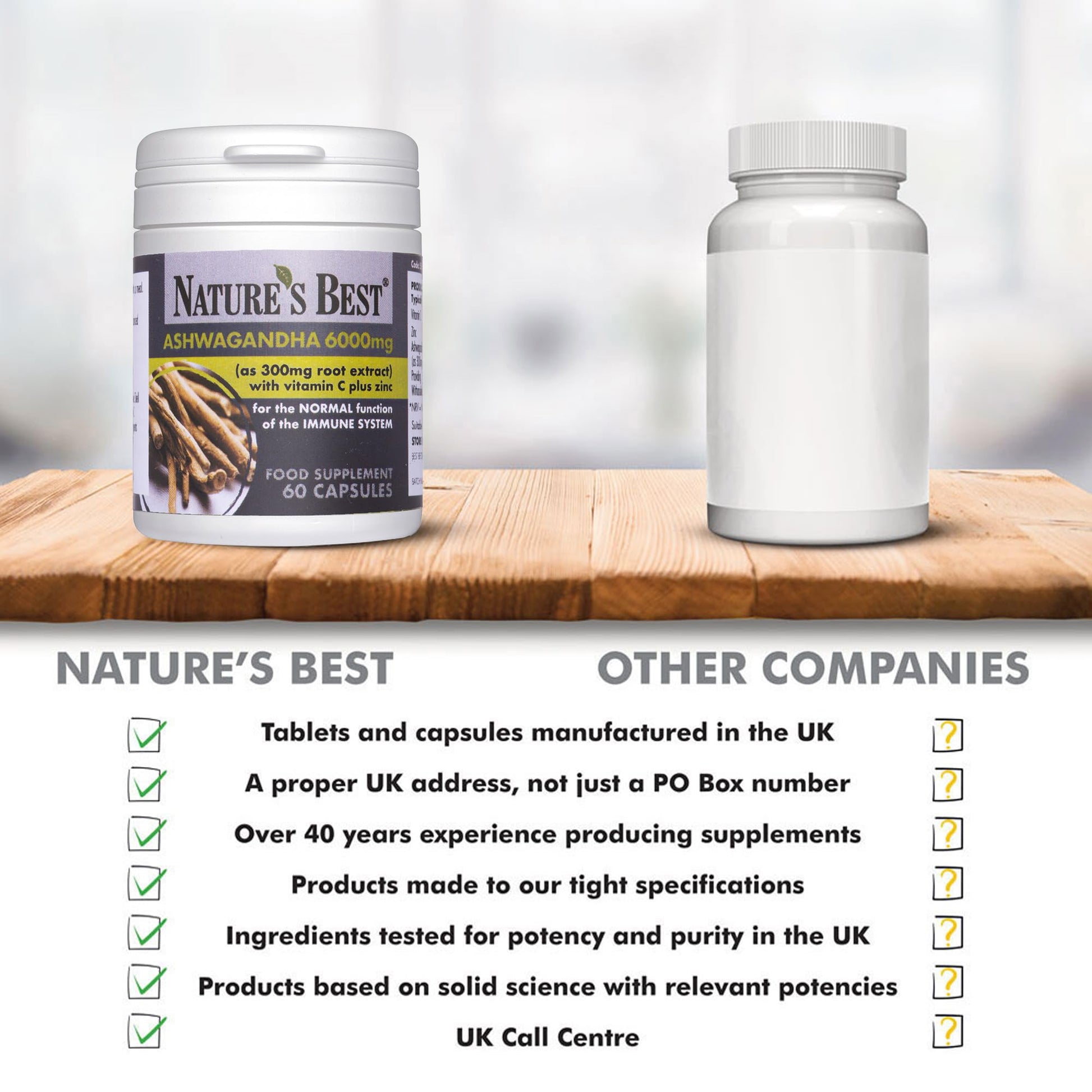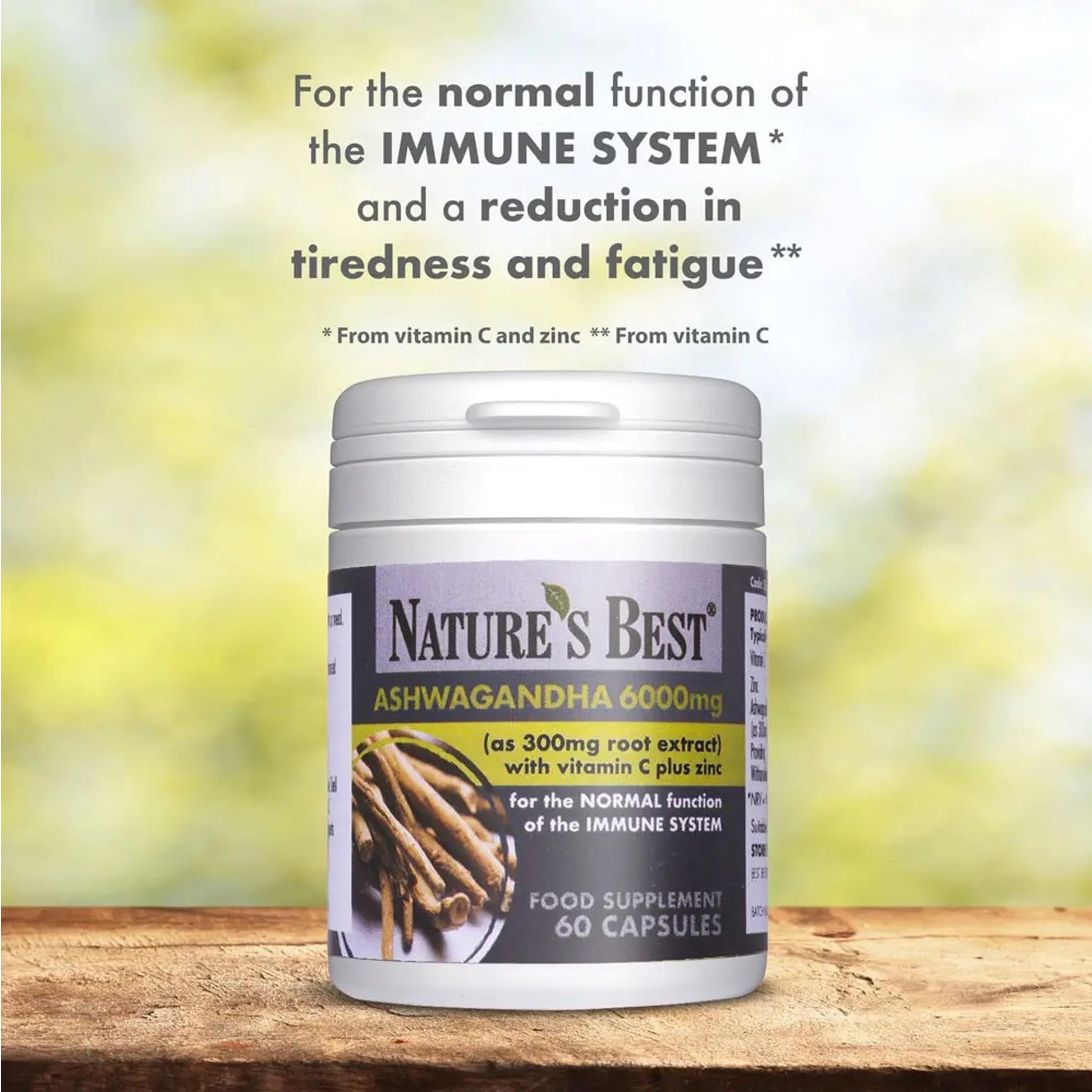 Ashwagandha 6000mg with 5% withanolides, Key ‘Actives’ | for Normal Psychological Function/Normal Function of The Nervous System |60 Vegan Capsules 1-a-Day, 2 Month’s Supply | UK Made