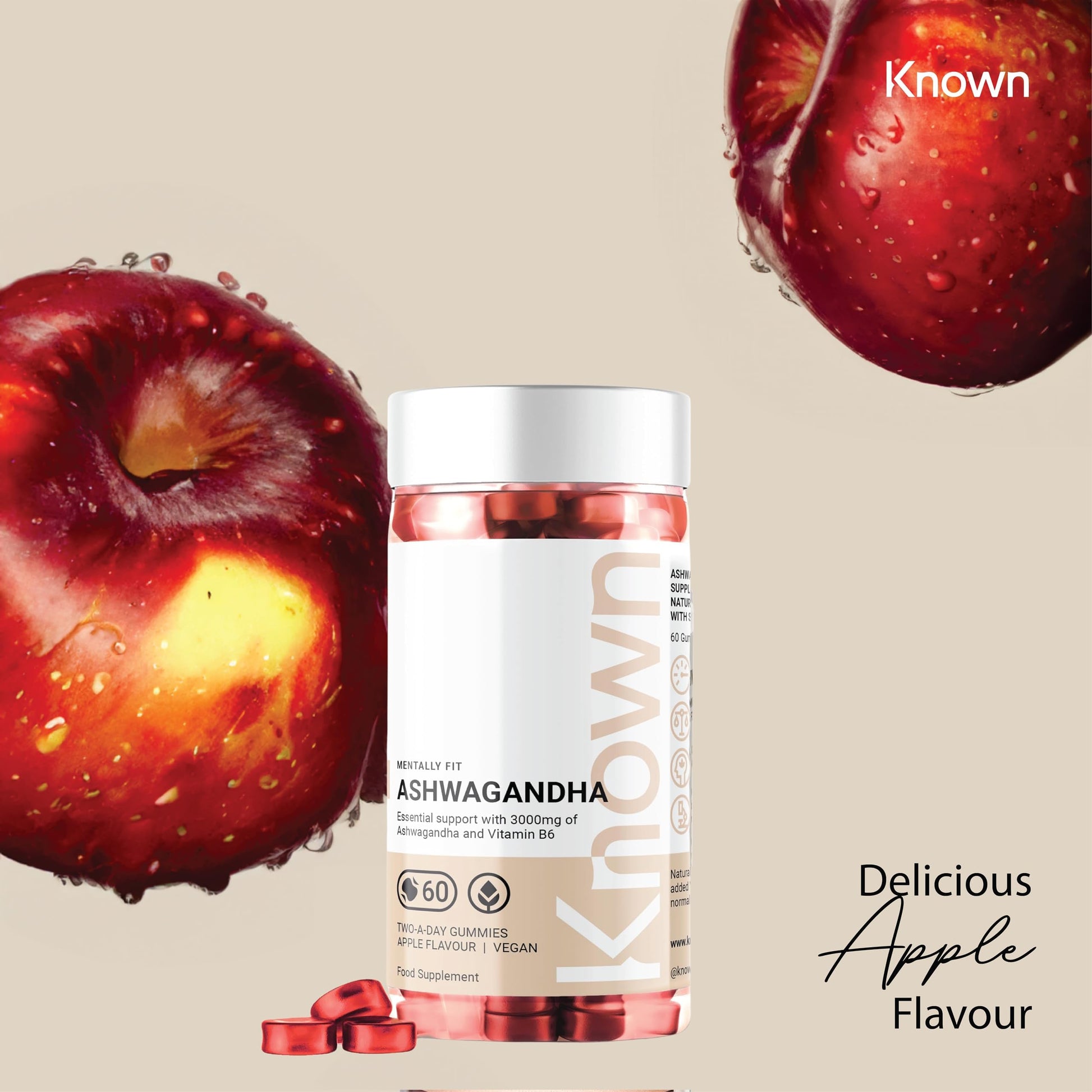 Ashwagandha Gummies 3000MG High Strength by Known Nutrition with Vitamin B6 | 120 Two-a-Day Gummies | Natural Botanical Extract | for Natural Stress Reduction | Apple Flavour (2 Months Supply)