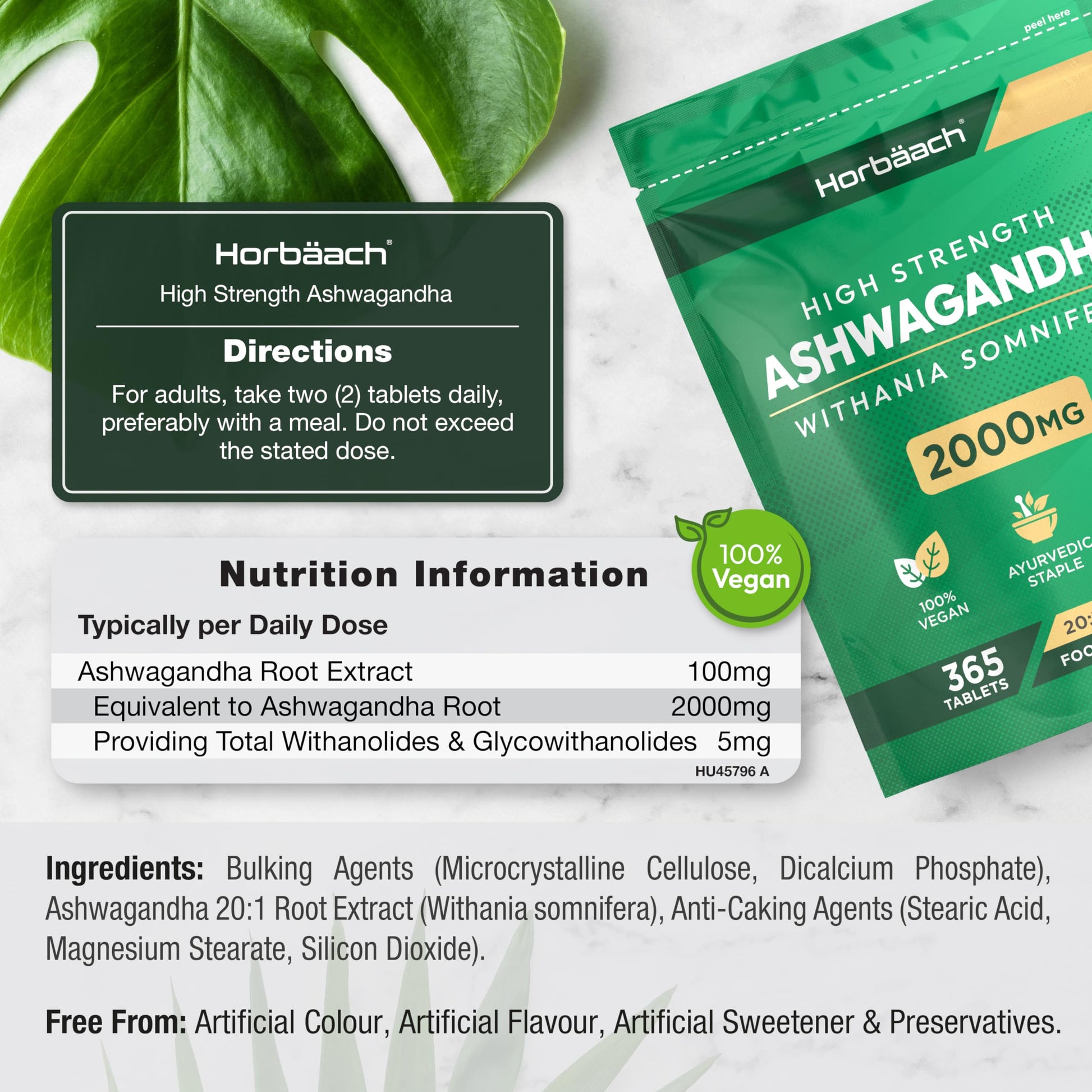Ashwagandha Tablets | High Strength 2000mg Ashwagandha Root | Suitable for Men & Women | 365 Vegan Tablets | by Horbaach