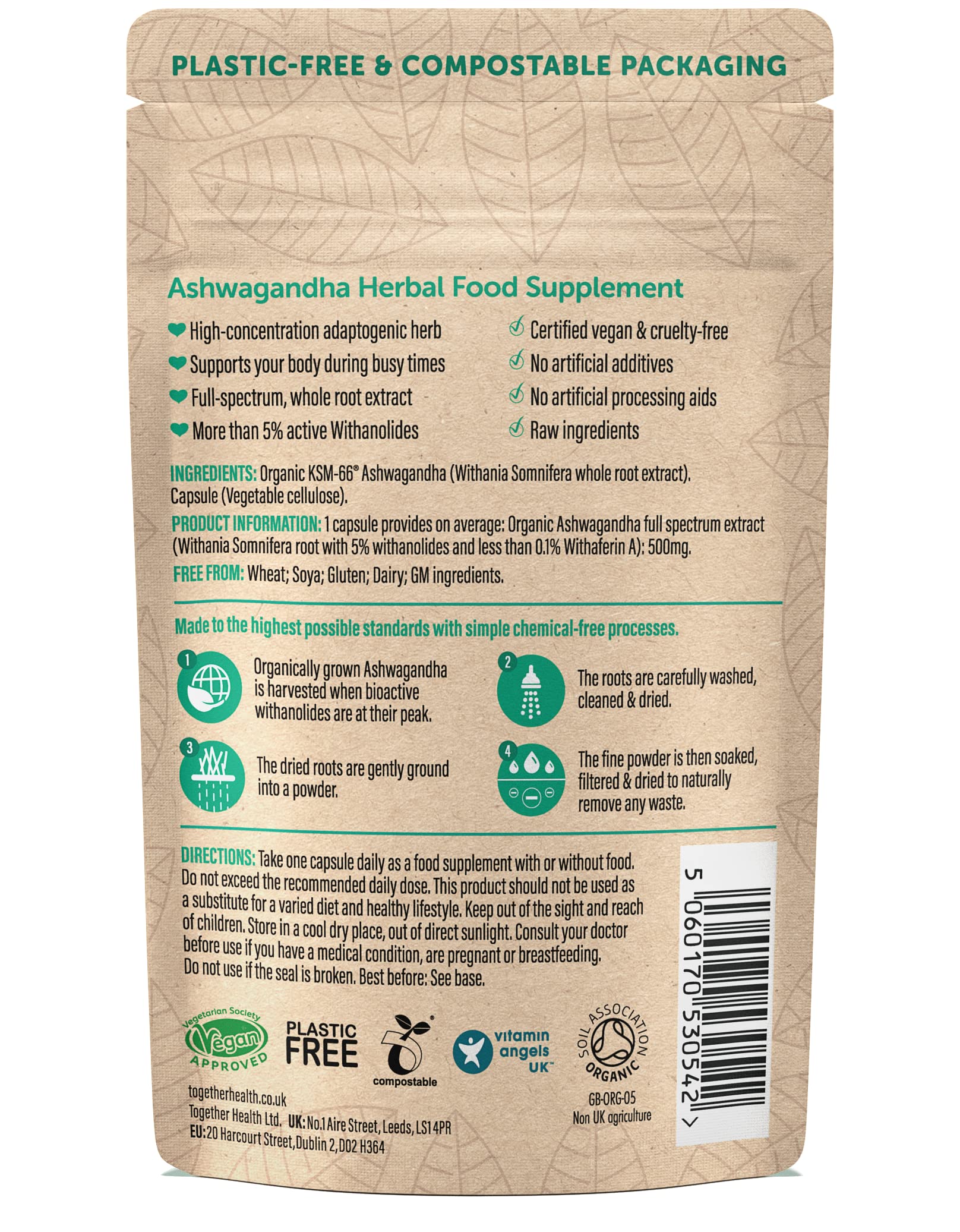 - SAFE & ALLERGEN-FREE: Our Ashwagandha is grown organically in Rajasthan, Northern India, and extracted without using any synthetic solvents. It is third-party batch tested safe for heavy metals, microbes & pathogens and free from wheat, yeast, gluten, soya, lactose, added sugars, additives, colourings, flavourings, preservatives and GMOs. We like to keep things natural.