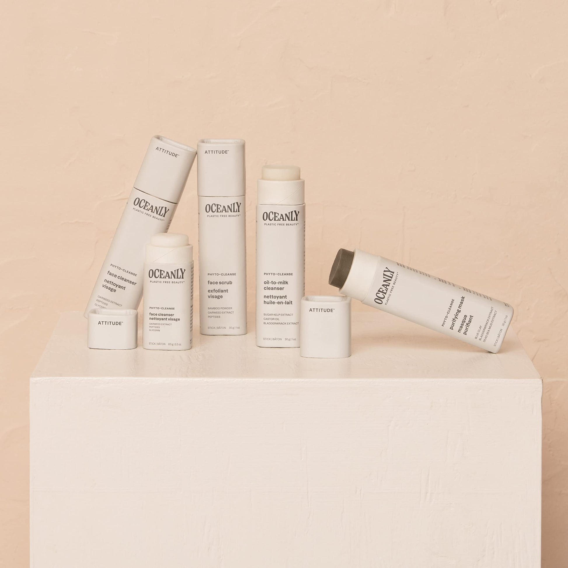 ATTITUDE Oceanly Face Cleanser Stick, EWG Verified, Plastic-free, Plant and Mineral-Based Ingredients, Vegan Skin Care Products, PHYTO CLEANSE, Unscented, 8.5 grams