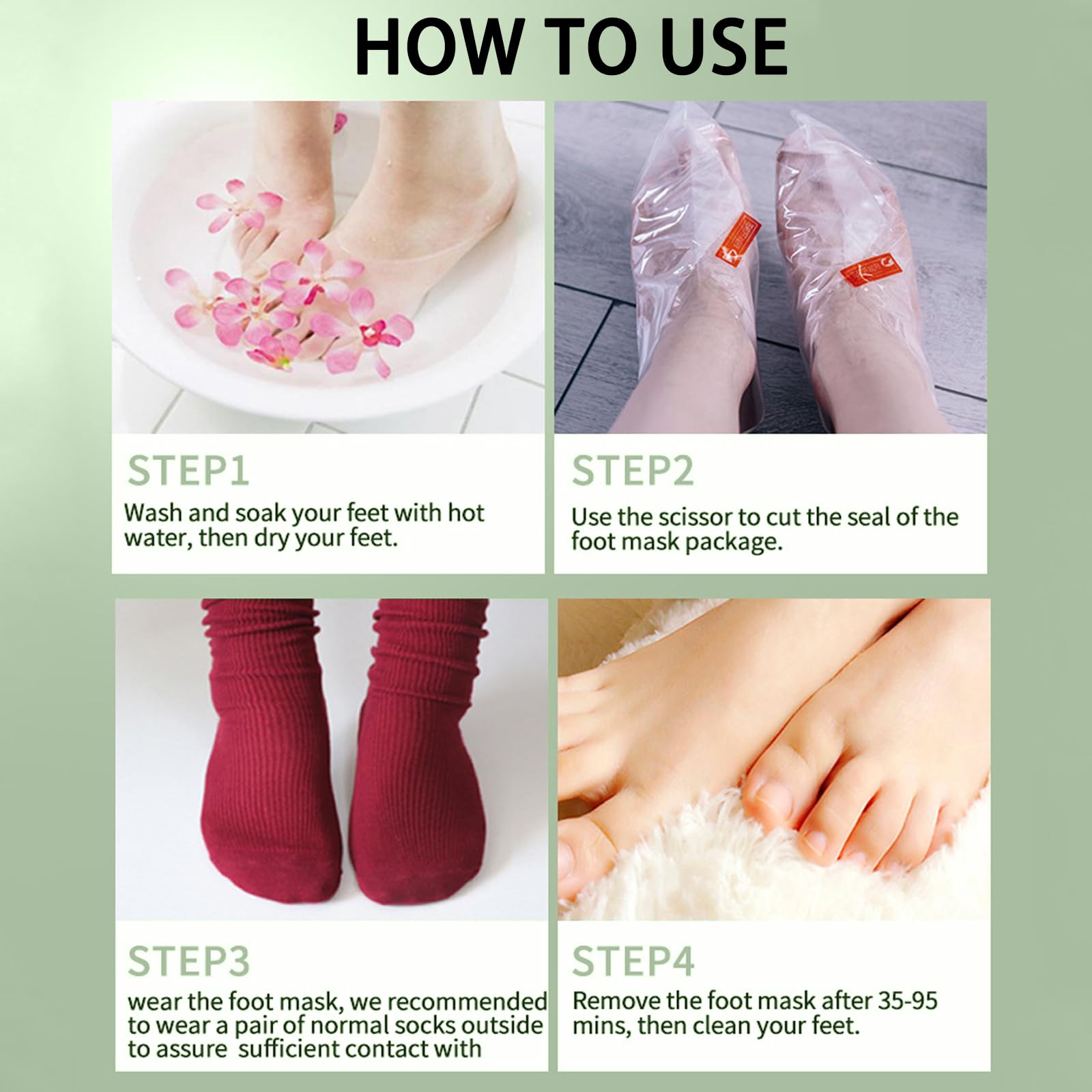 Using a foot peel mask for hard skin is simple and convenient. Just clean and dry your feet, put on the foot mask, leave it on for 35-95 minutes, then easily remove the film and wash your feet with purified water