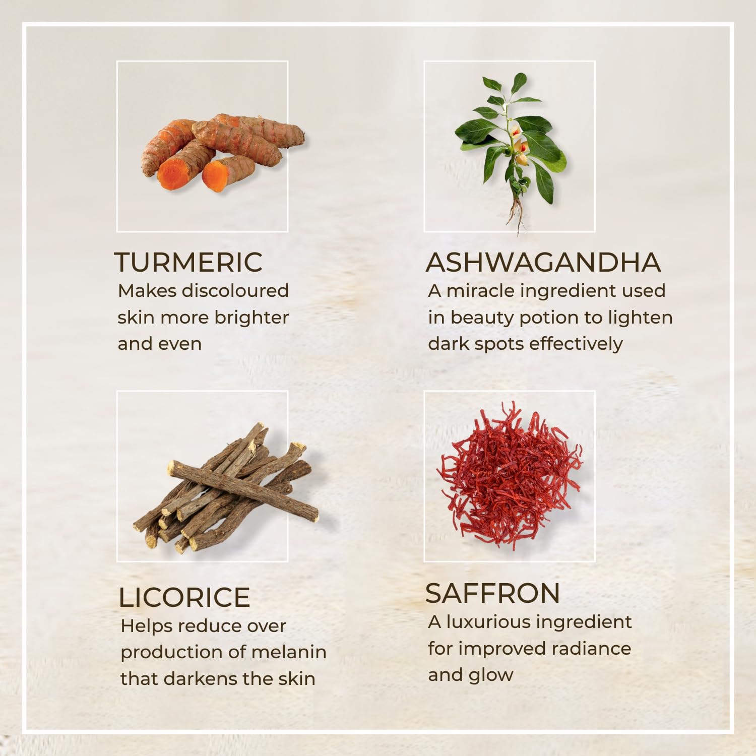 Lightening oil typically contains a blend of various herbs and natural ingredients, with saffron being one of the key components. Saffron is known for its skin-brightening properties. Other ingredients may include sandalwood, turmeric, lotus, and other Ayurvedic herbs, each with its own beneficial properties for the skin.More Info