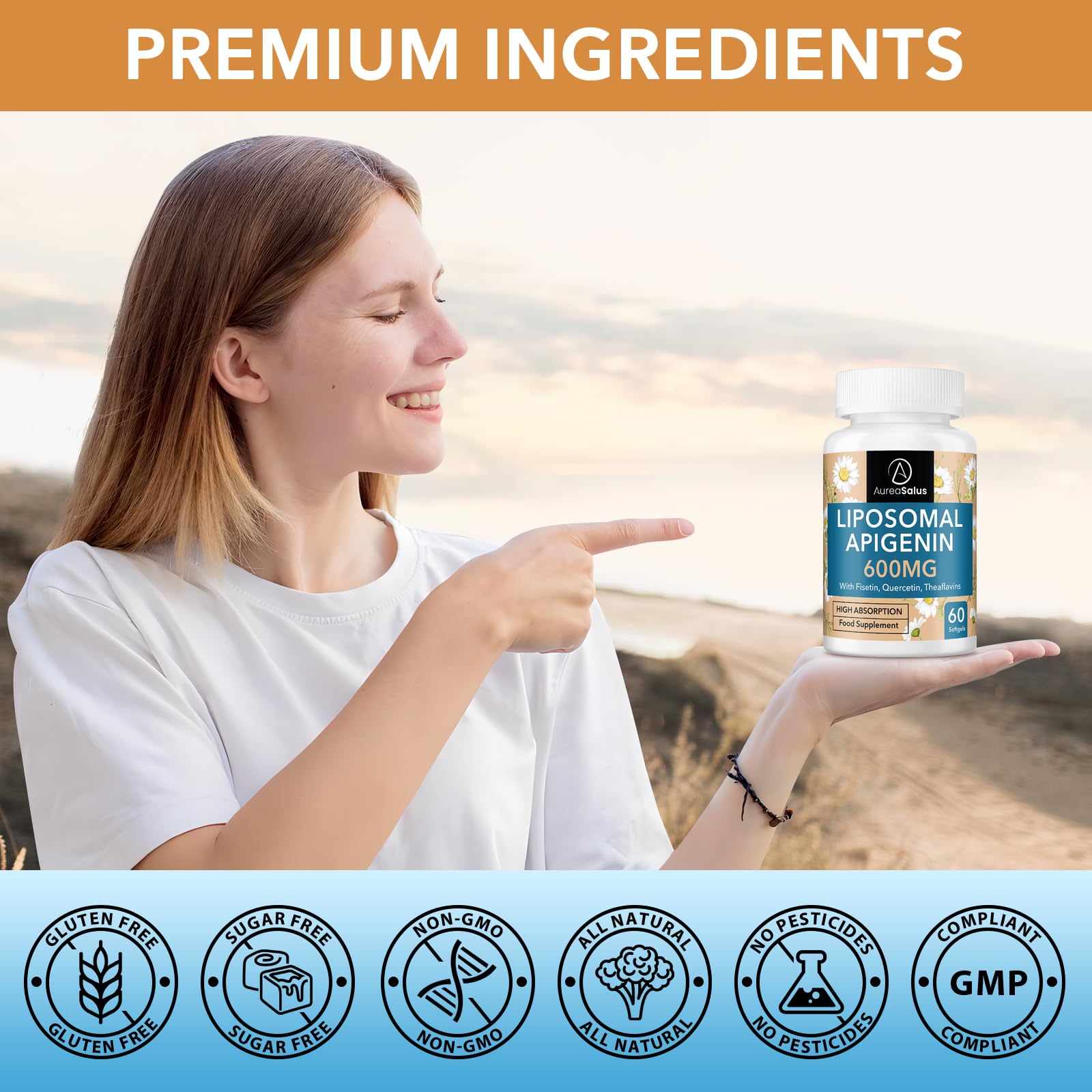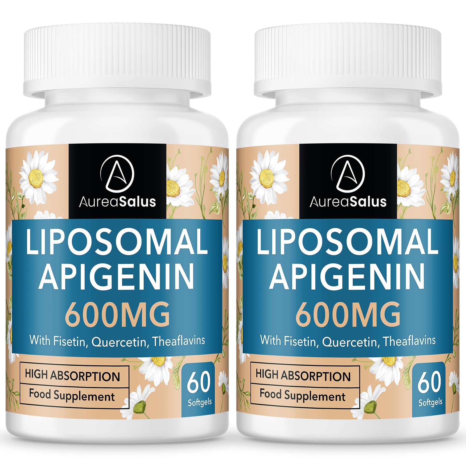 AureaSalus Liposomal Apigenin 600mg, Extra Strength Apigenin Supplement with Fisetin, Quercetin and Theaflavins for Sleep, Relaxation & Mood, Powerful Flavonoid & Antioxidants (60 Count (Pack of 2))
