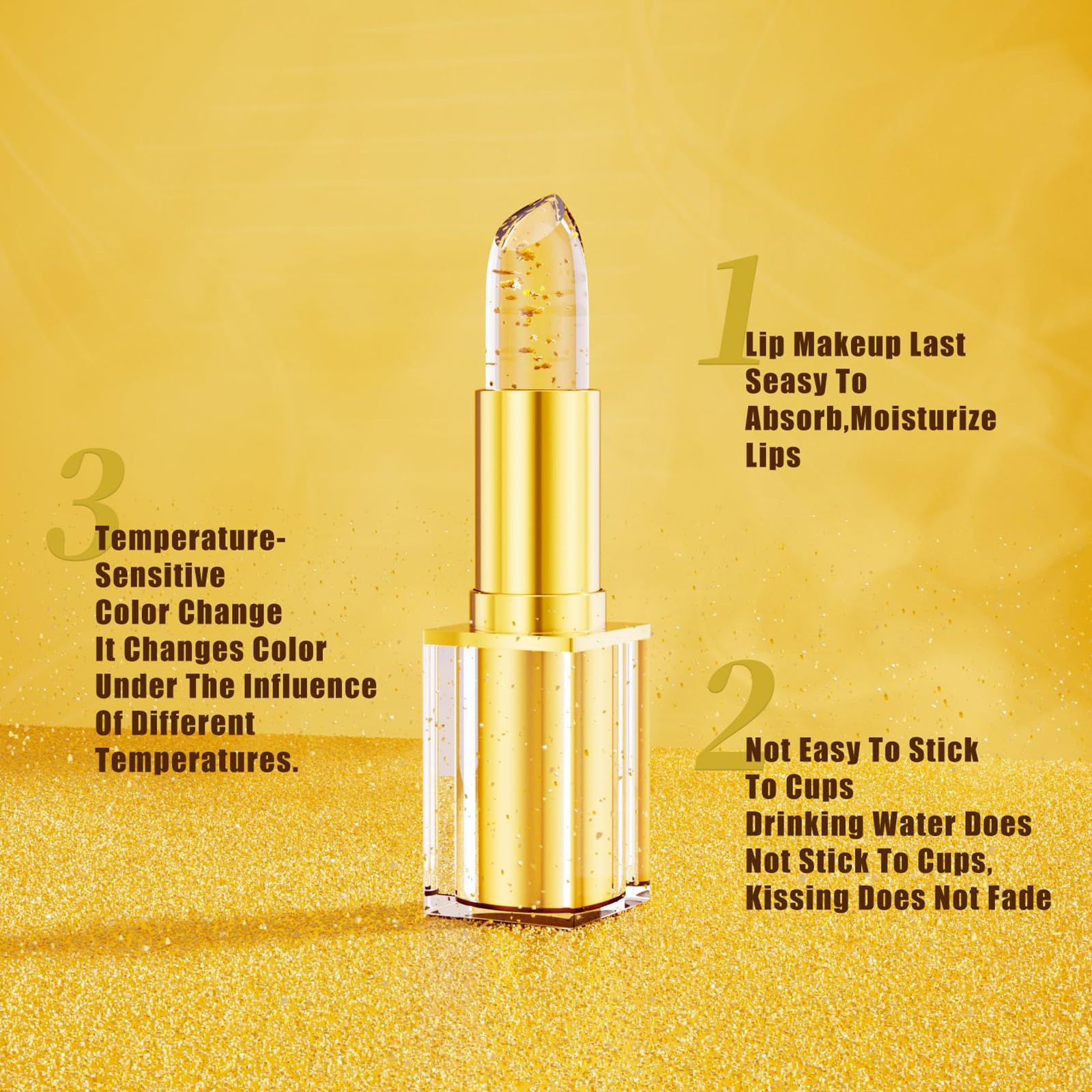 AurolaGlow Lipstick - Color-Changing Lipstick: Transfer-Proof Formula with Gold Foil & Crystal | 24H Hydration, Glossy Shine | Long-Lasting Lip Gloss