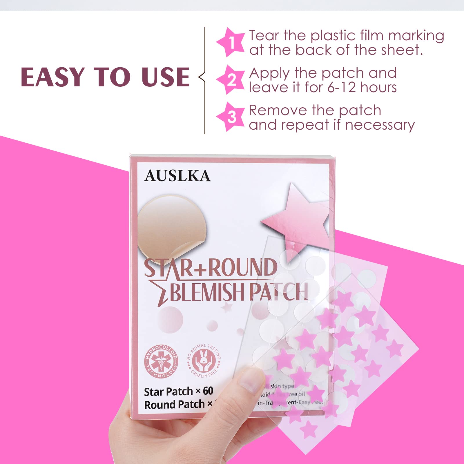 AUSLKA Star Pimple Patches -156 Patches - Hydrocolloid Spot Dots, Blemishes Patch - Pimple Stickers, Patches To Cover Facial Blemishes