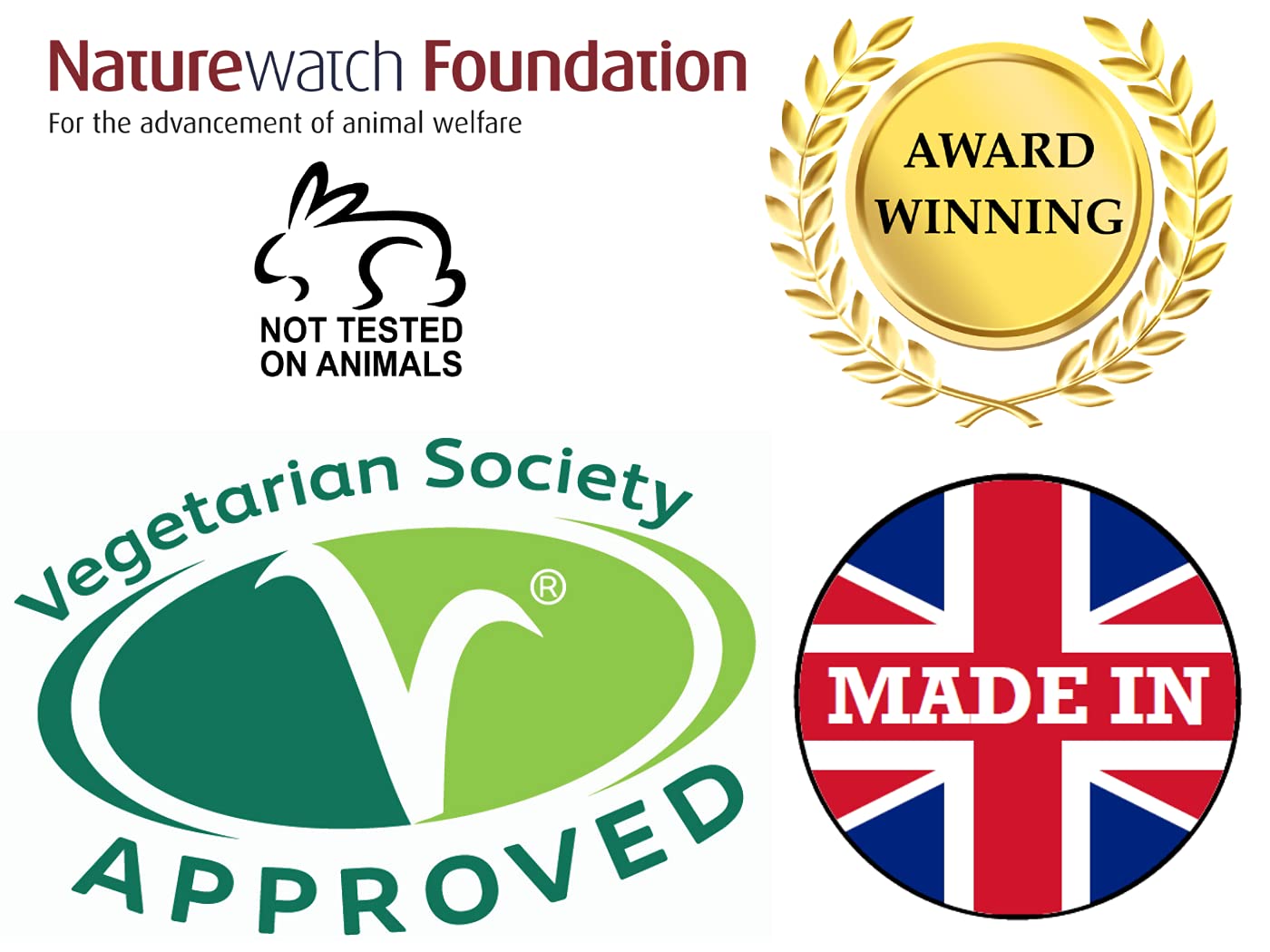 - Vegetarian Approved and included in Naturewatch's Cruelty Free Shopping Guide