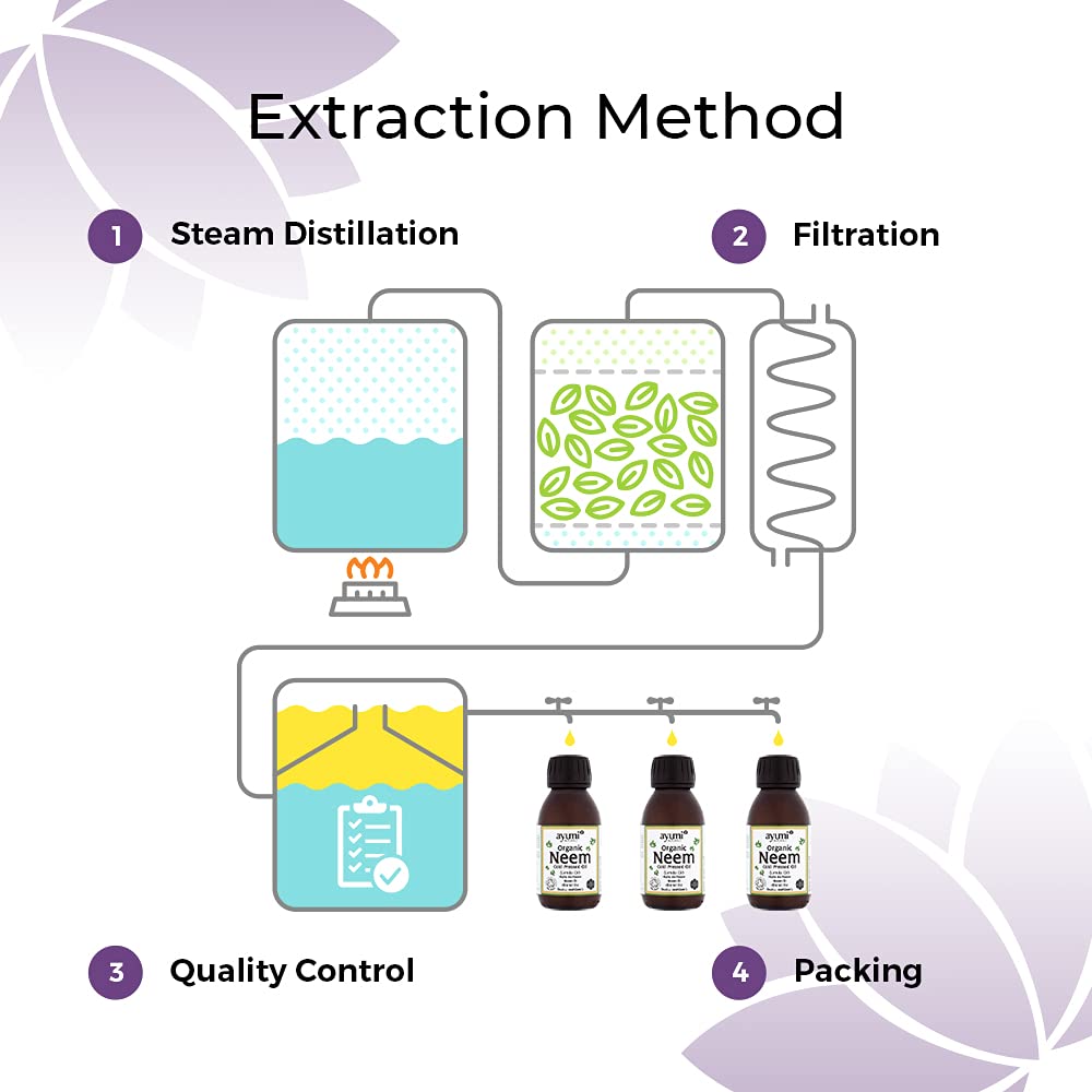 - Neem oil is known for restoring the skin’s natural elasticity and promoting healthy, glowing skin.