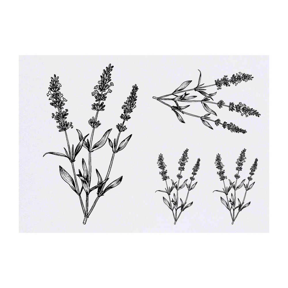 Azeeda 4 x 'Simple Lavender Plant' Temporary Tattoos - Water Resistant, Skin-Safe, Non-Toxic Transfers, Mixed Sizes (TO00076380)