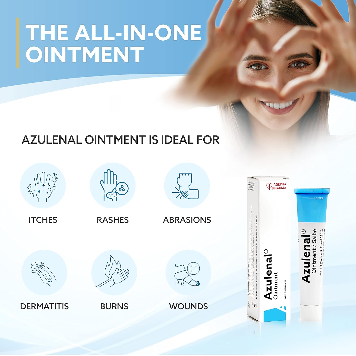 - WOUND HEALING OINTMENT: Azulenal Ointment is a multipurpose ointment that helps relieve sores, itches, skin redness, and other forms of skin irritation with excellent effectiveness. It also aids the healing process for wounds, scratches, and scrapes