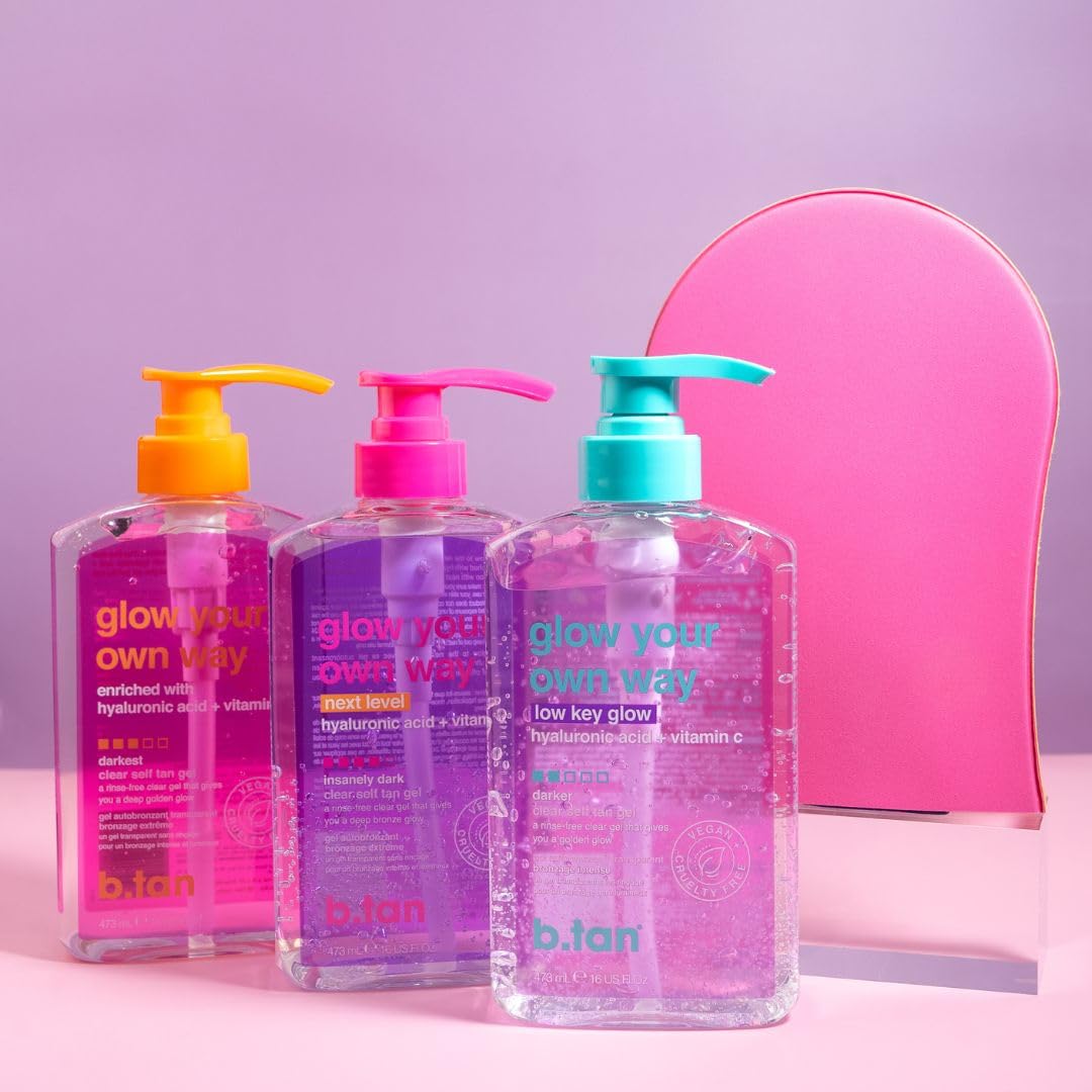 b.tan Gel Body Self Tanning Mitt | Glow Your Own Way Smooth Gel Mitt - Self Tan Gel Applicator Glove, Streak-Free, Even Application, Double Sided, Reusable