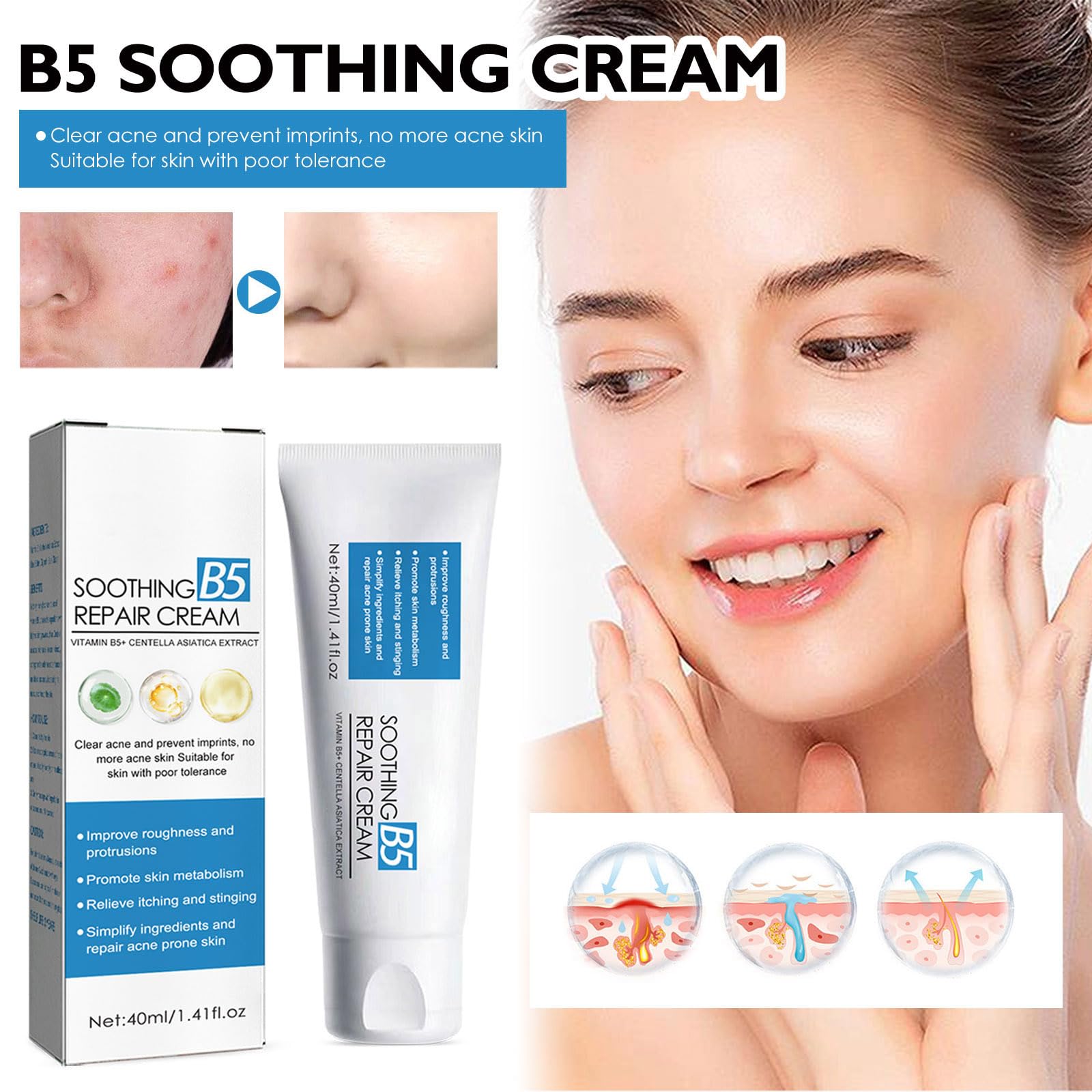 B5 Cream Anti-Ageing, Repairs and Moisturises the Skin, Against Fine Lines and Wrinkles, Cream Face to Reduce Wrinkle Depth and Regeneration for All Skin Types, 40 ml
