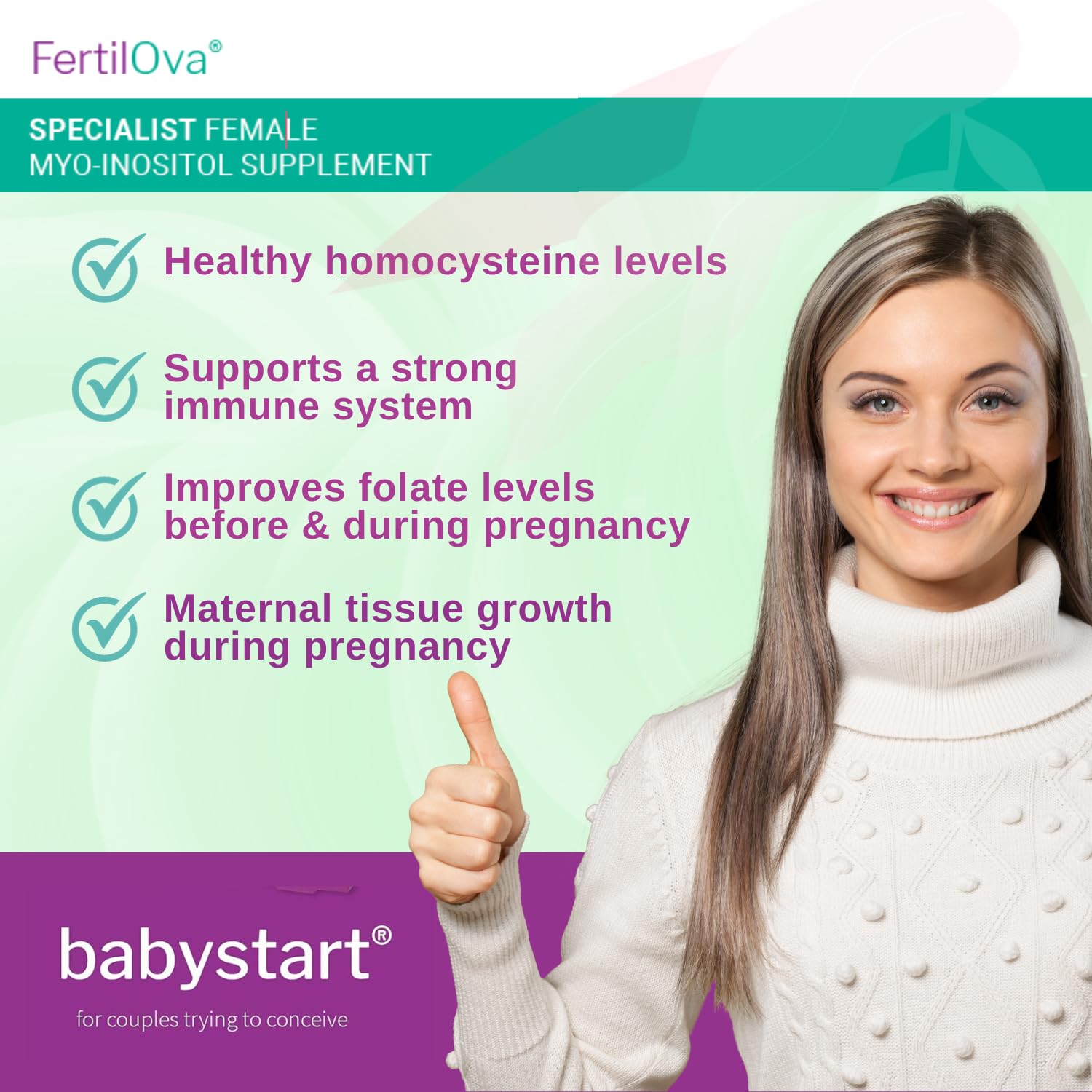 Babystart Fertility Supplements for Women - FertilOva 30 Sachets, 2 Week Supply, Pre Pregnancy Myo-Inositol and Folic Acid Supplement for Conception, Immune System and Fertility Support