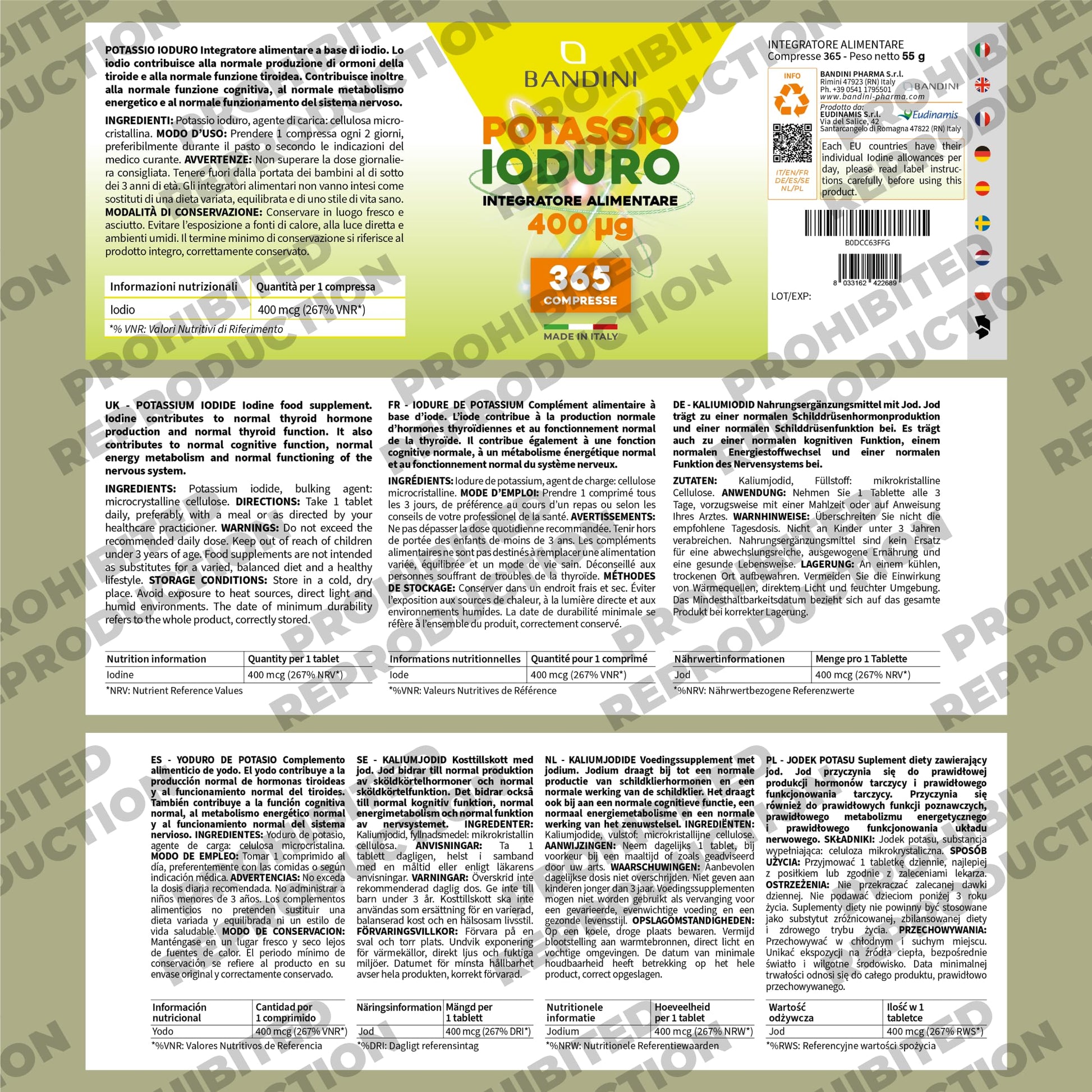 - 🔝 TESTED QUALITY. Potassium Iodide 365 tablets was created from a rigorous selection of raw materials. Our product does not contain ingredients of animal origin (100% vegan), is naturally GMO-free and does not contain flavorings or colorants.