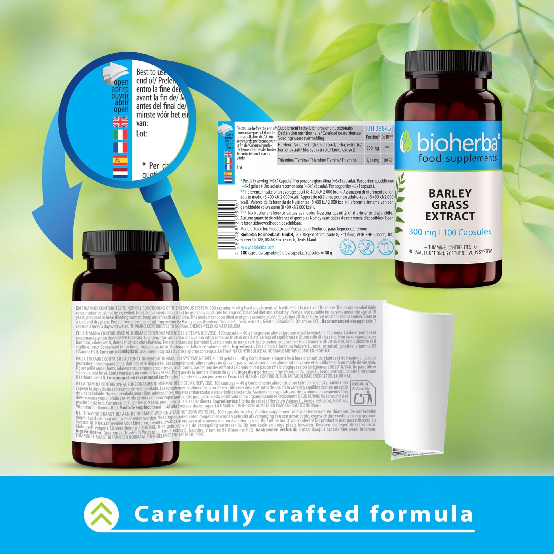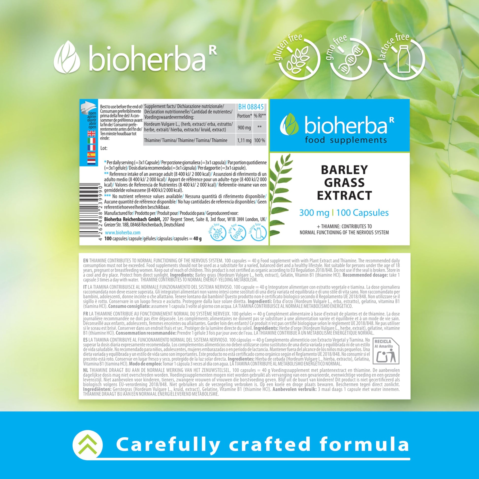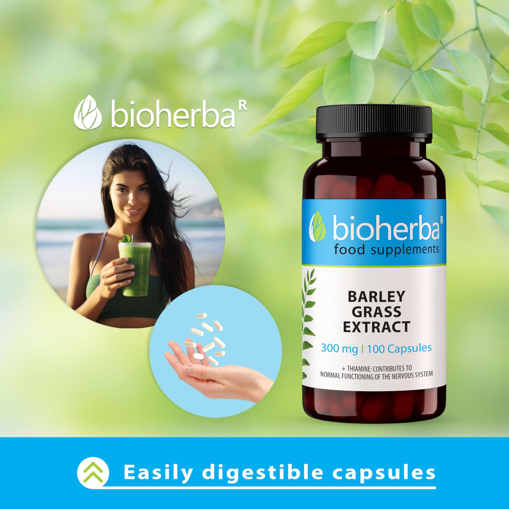 Barley Grass Extract 300 mg - 100 Capsules Green Superfood Supplement for Health and Nutrition by BIOHERBA