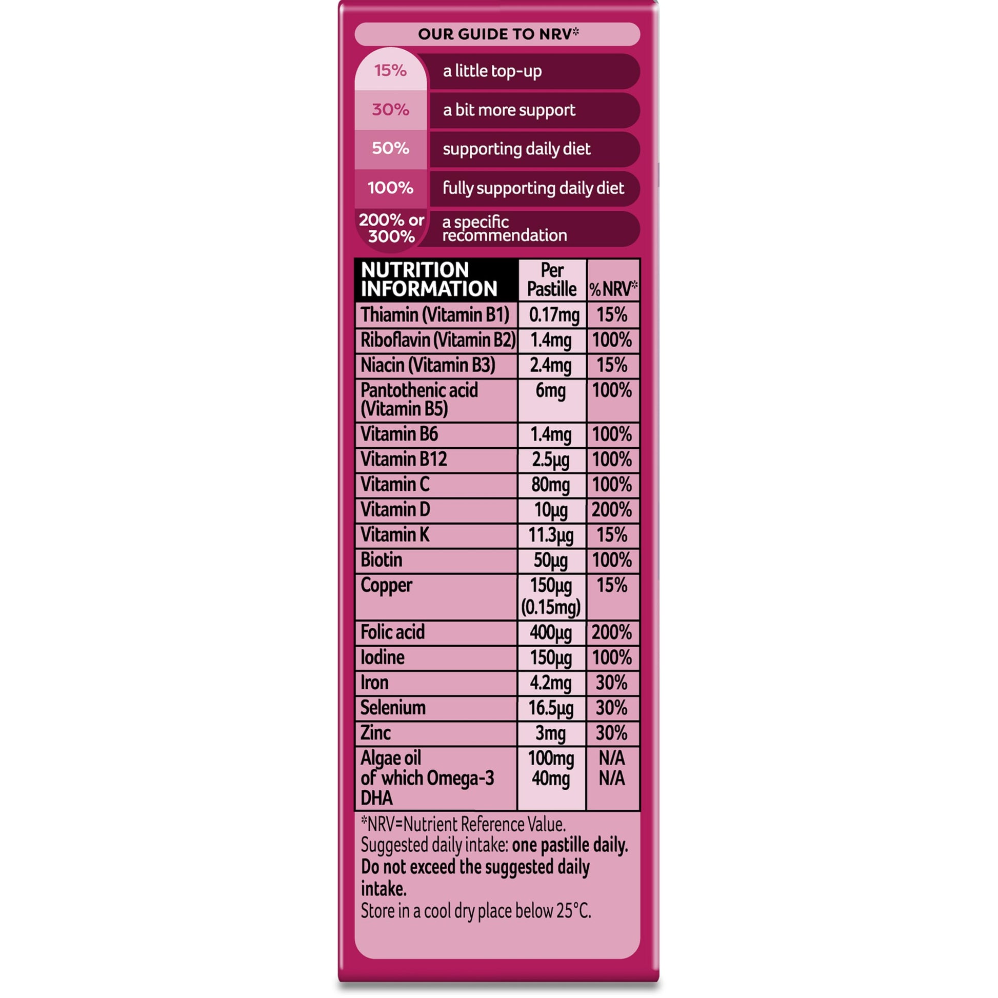 - Deliciously chewy Strawberry & Orange flavour one-a-day multivitamins, multiminerals and Omega-3 DHA pastilles