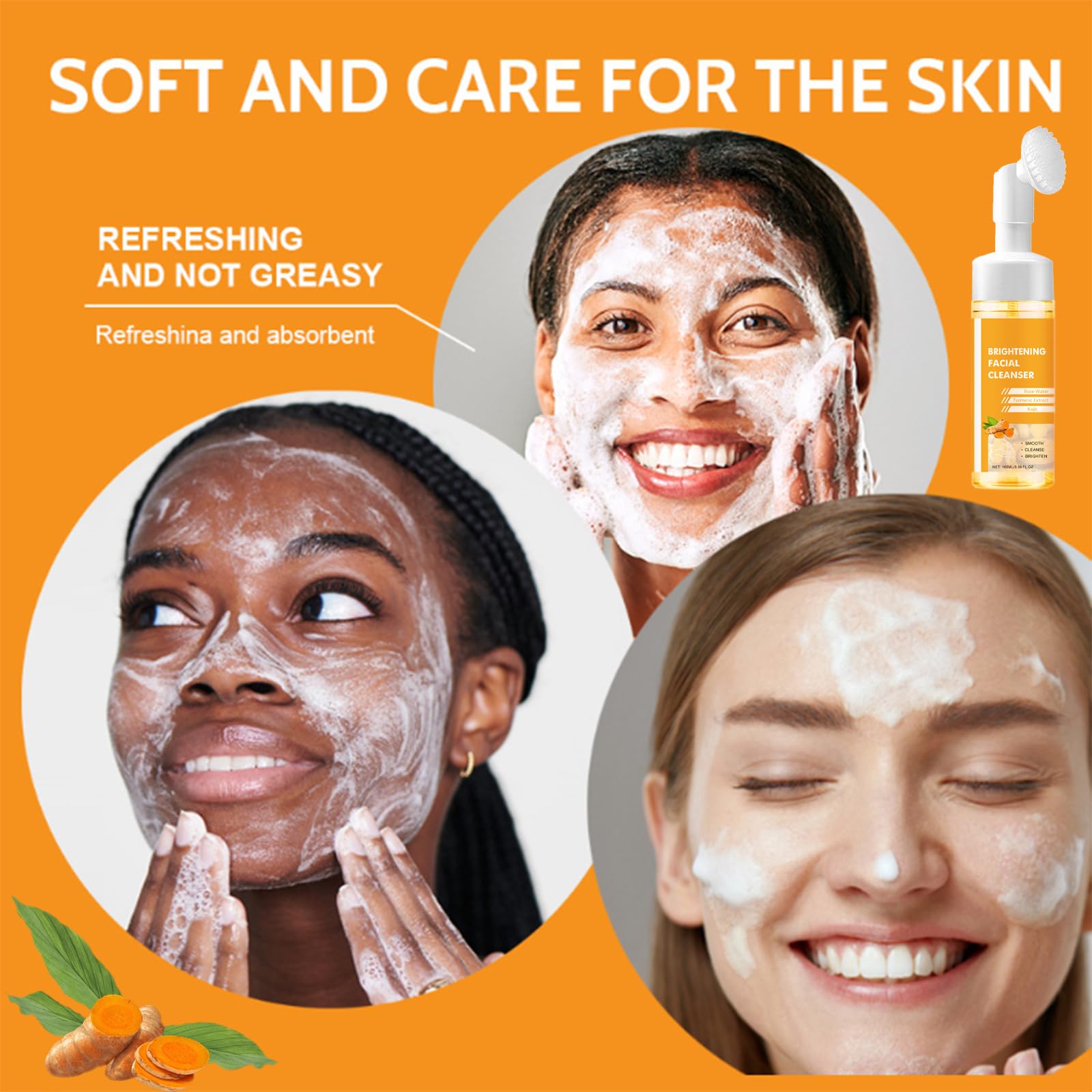Brightening Turmeric Face Wash – Foaming Facial Cleanser with Brush, Hydrates & Gently Cleanses, Antioxidant, Regulate the Balance of Water and Oil, Deep Cleansing Oil Control Cleanser