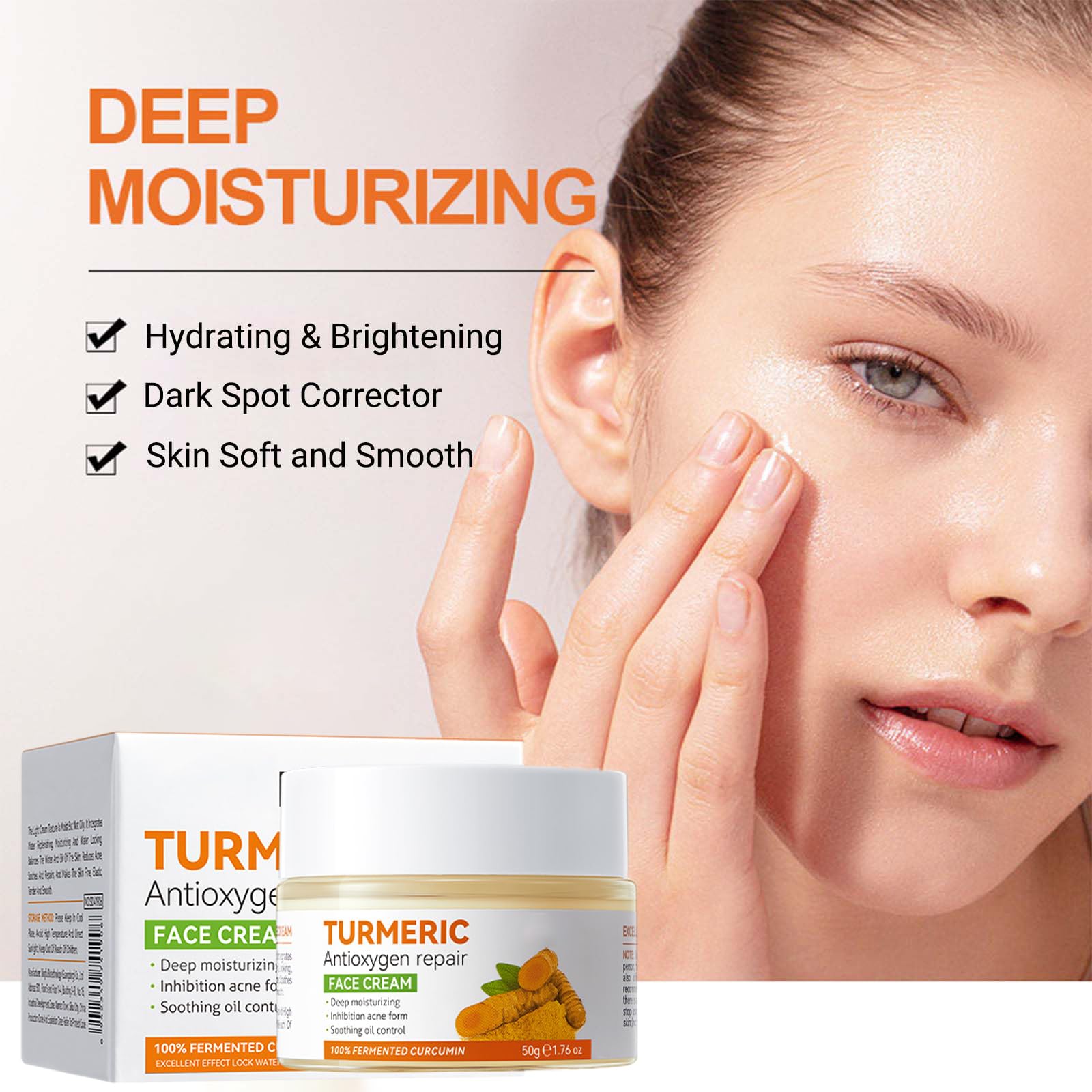 Turmeric Brightening Face Cream, Skin Lightening Cream for Women, Dark Spot Corrector with Vitamin C, Moisturiser for Radiant Glowing Skin, Turmeric Moisturizer for Even Tone & Youthful