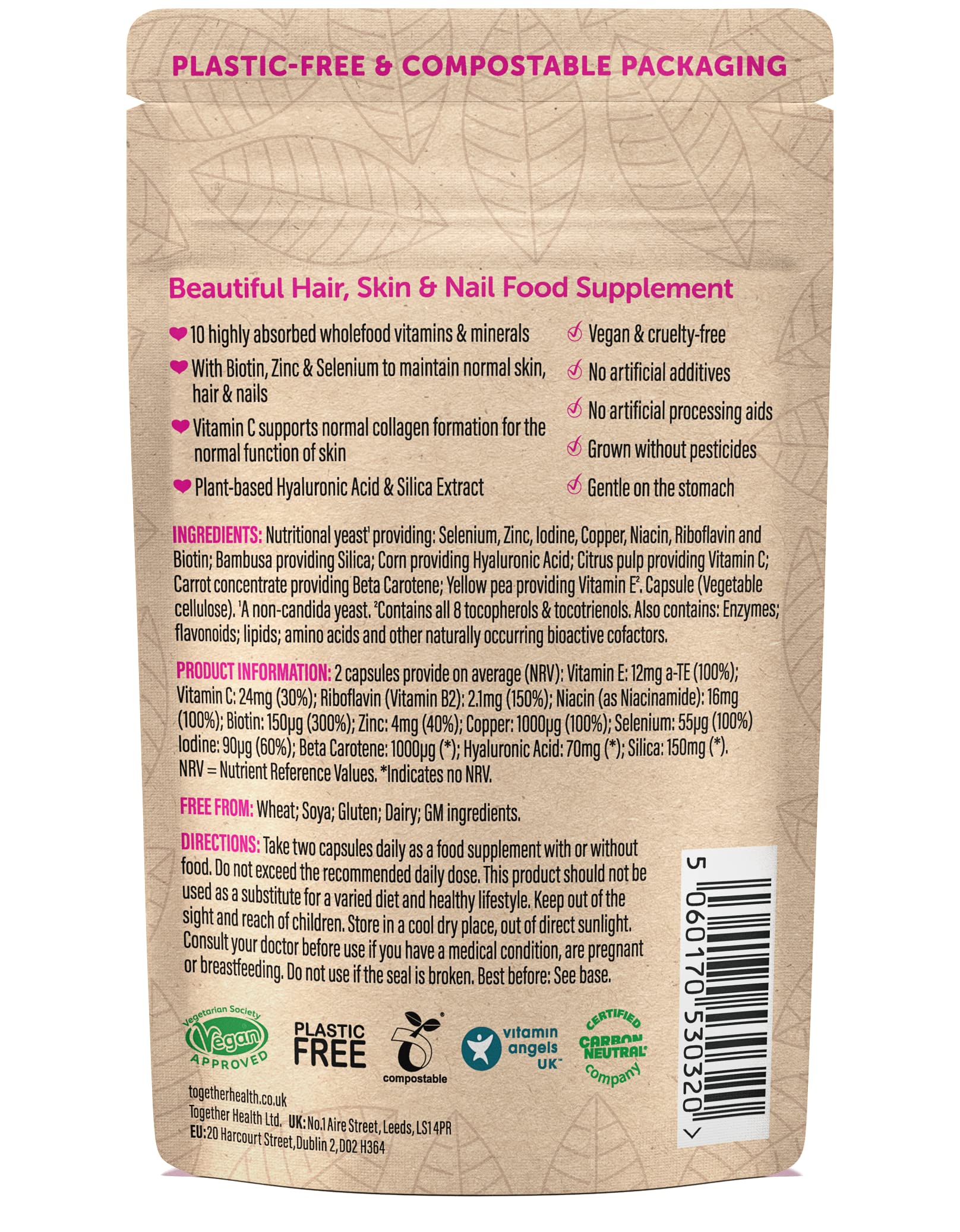 Beautiful Hair, Skin & Nail Daily – Together Health – Whole Food Nutrients – 10 Beauty-Specific Vitamins & Minerals – Hyaluronic Acid – Natural Silica – Vegan Friendly – Made in The UK – 60 Vegecaps