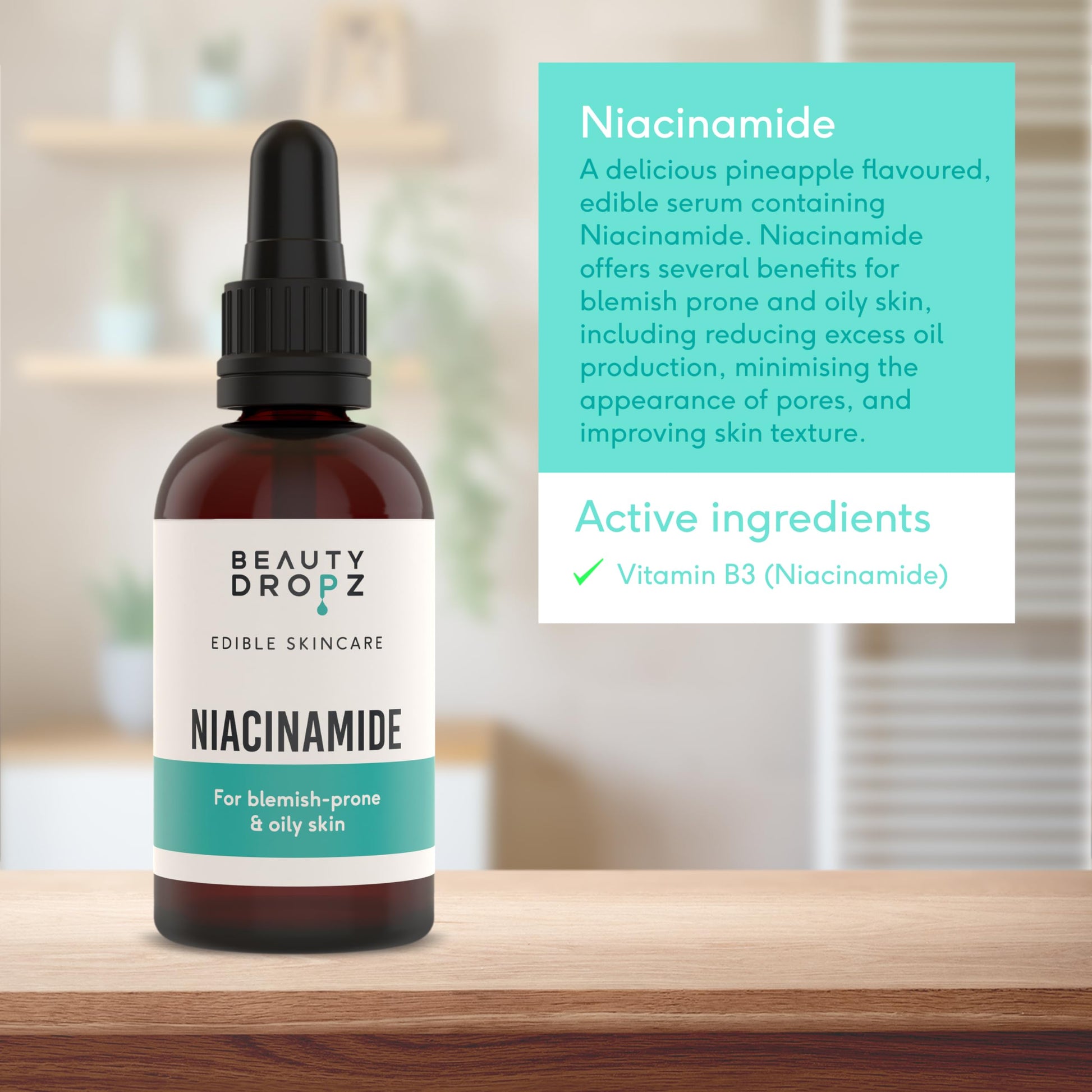Beauty Dropz Niacinamide Oral Skin Care Drops – Vitamin B3 / Edible Serum for Blemish-Prone Skin – Dark Spot Corrector – Vegan Skincare – Pore Minimising – Pineapple Flavour – 60ml