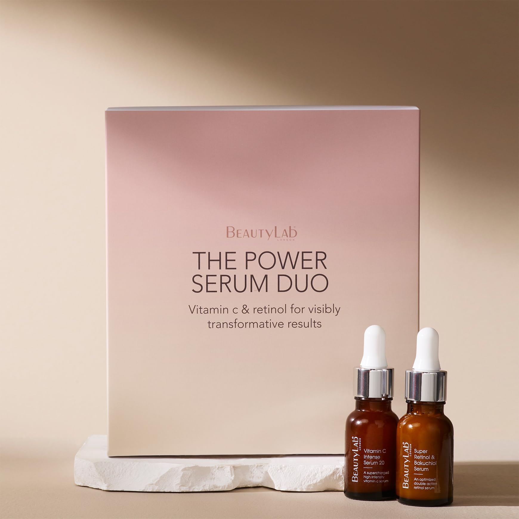 BEAUTYLAB Power Serum Duo Gift Set, Vitamin C Intense & Super Retinol Bakuchiol Serum, Luxurious Skincare Set for Women, Minimises Wrinkles & Enhances Radiance, Gifts for Women