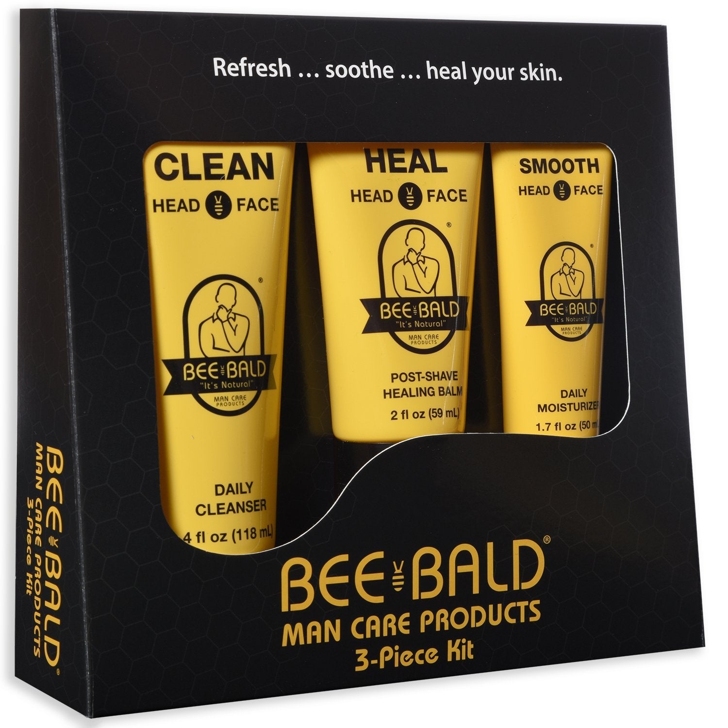 - BEE BALD 3 Piece Kit includes CLEAN, HEAL & SMOOTH.