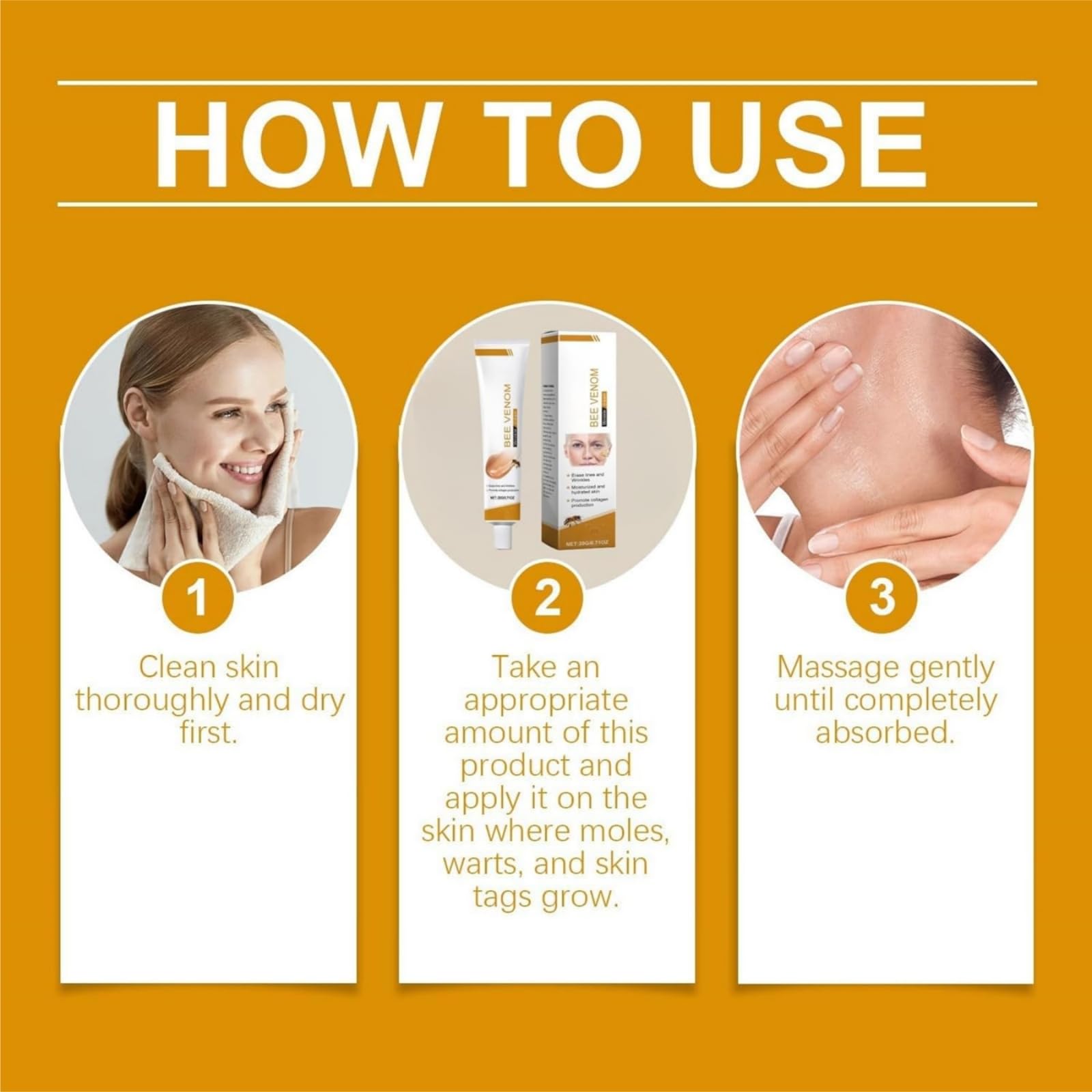 1.Clean and dry your skin before using bees ven-om cream.