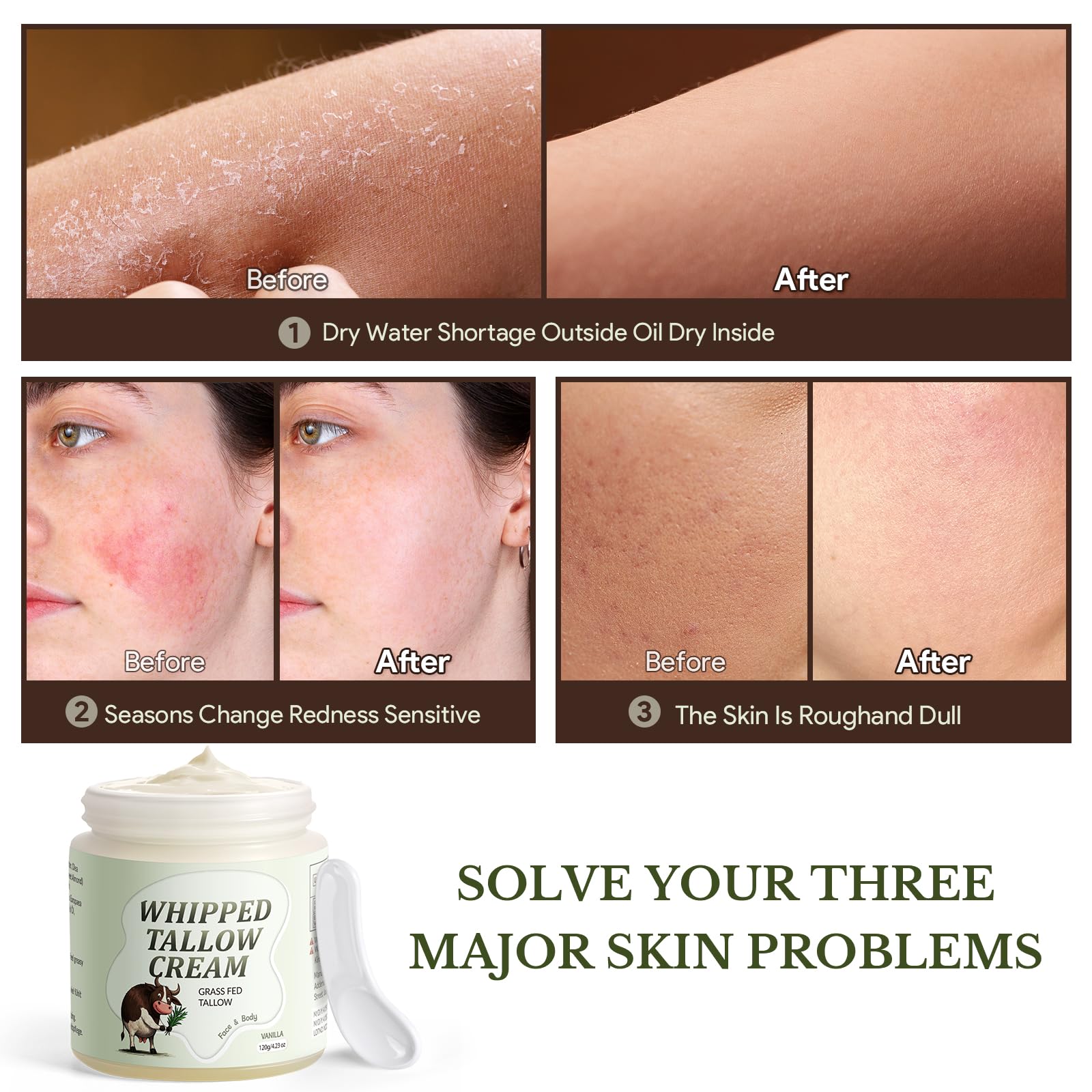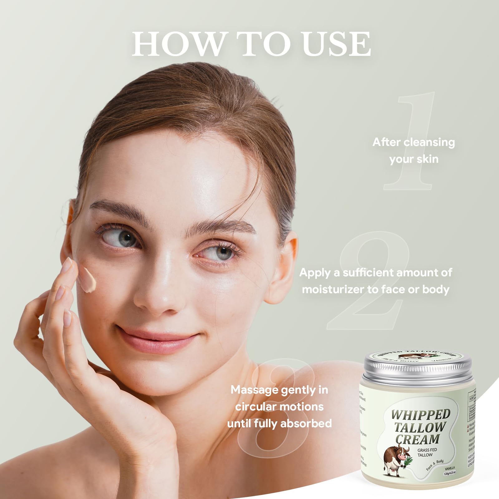 Beef Tallow Skin Care, Whipped Tallow Face Cream, Beef Tallow Moisturiser for Face & Body, Natural Grass Fed Beef Tallow, Skin Care Cream for Dry SkinMore Info