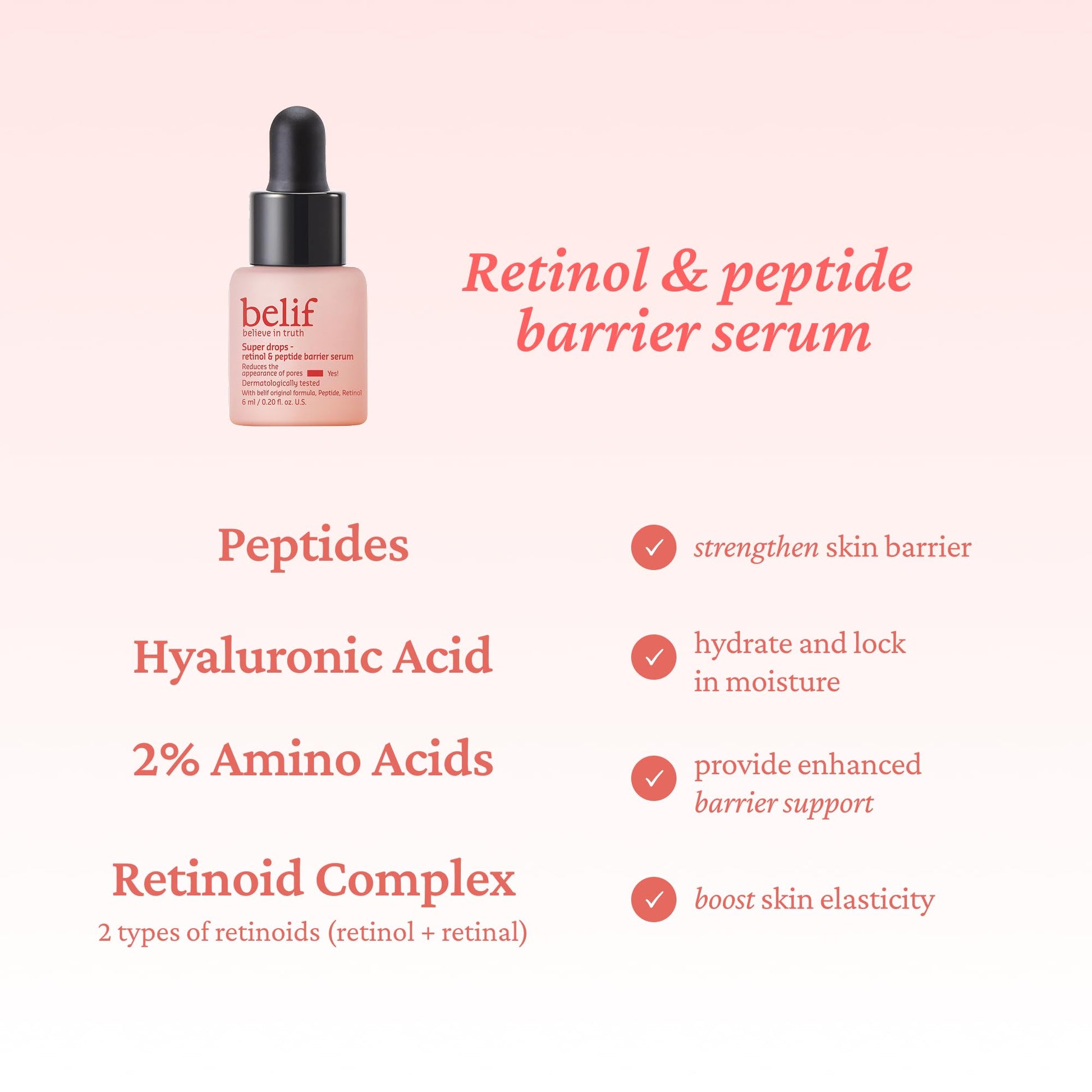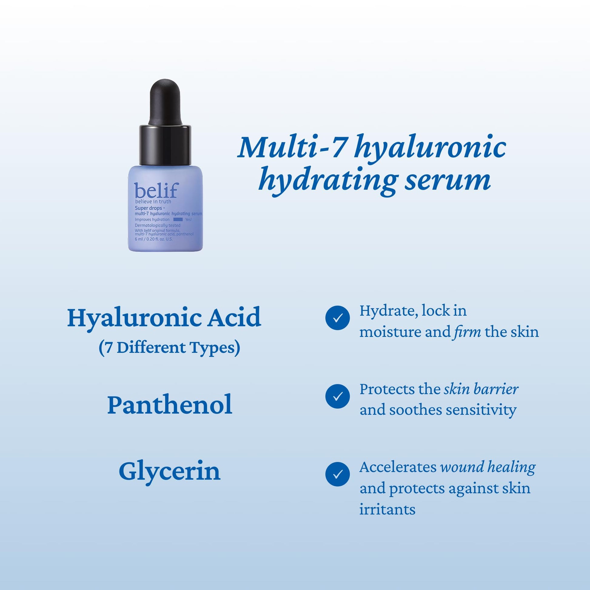 belif Super drops - discover glowing skin mini kit | Travel size, gift set, hyaluronic hydrating serum, peptide firming serum, vitamin C brightening serum, Korean skincare, Korean beauty (6ml x 3)