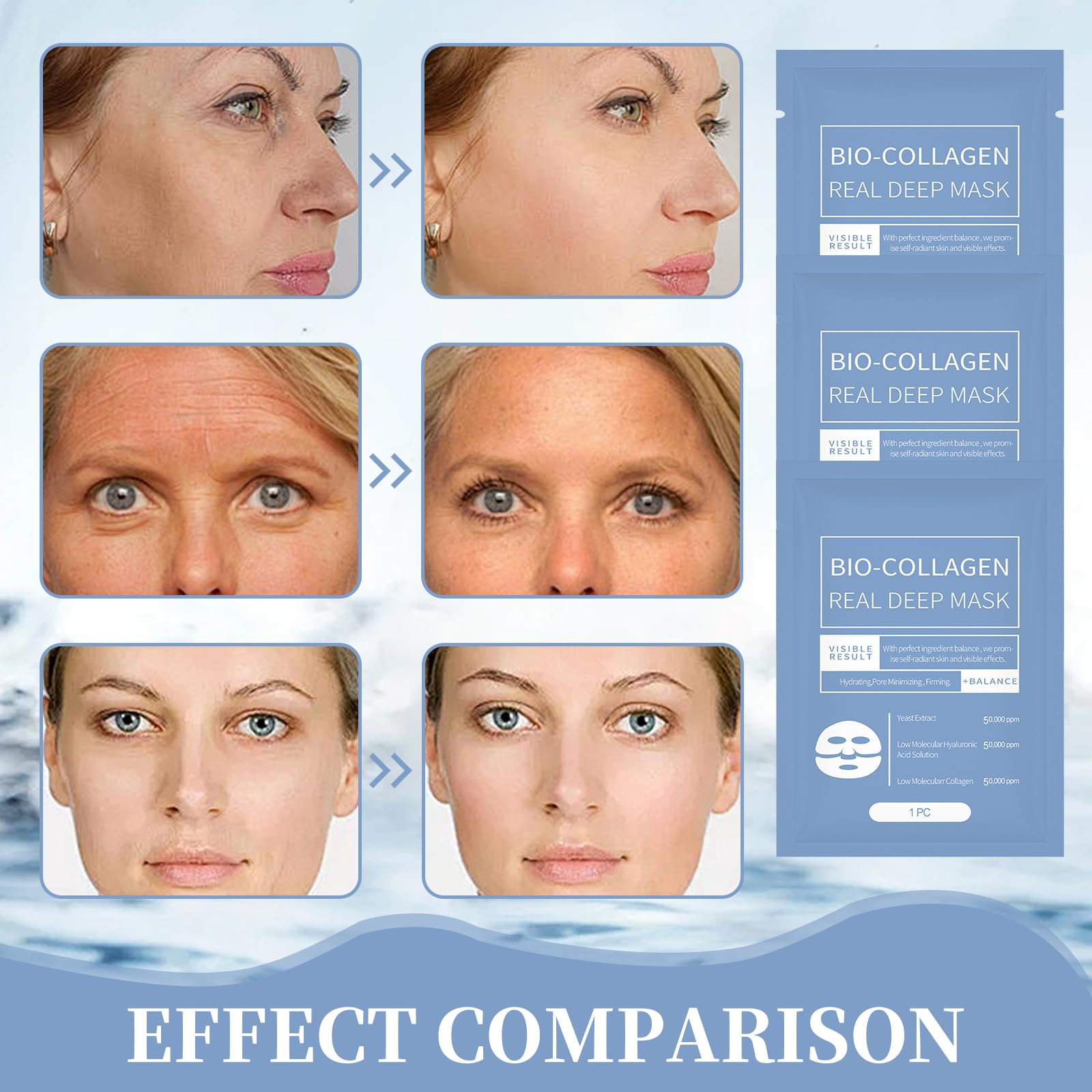 Experience the ultimate skincare transformation with our Bio-Collagen Real Deep Mask. This mask deeply nourishes and moisturizes your skin, preserving its healthy radiance for a flawless look every day. Enjoy long-lasting moisture balance throughout the day, keeping dryness at bay and ensuring your skin stays refreshed and hydrated. Suitable for all skin types, each pack includes 7 masks, offering adaptability and comprehensive care for diverse skin needs.