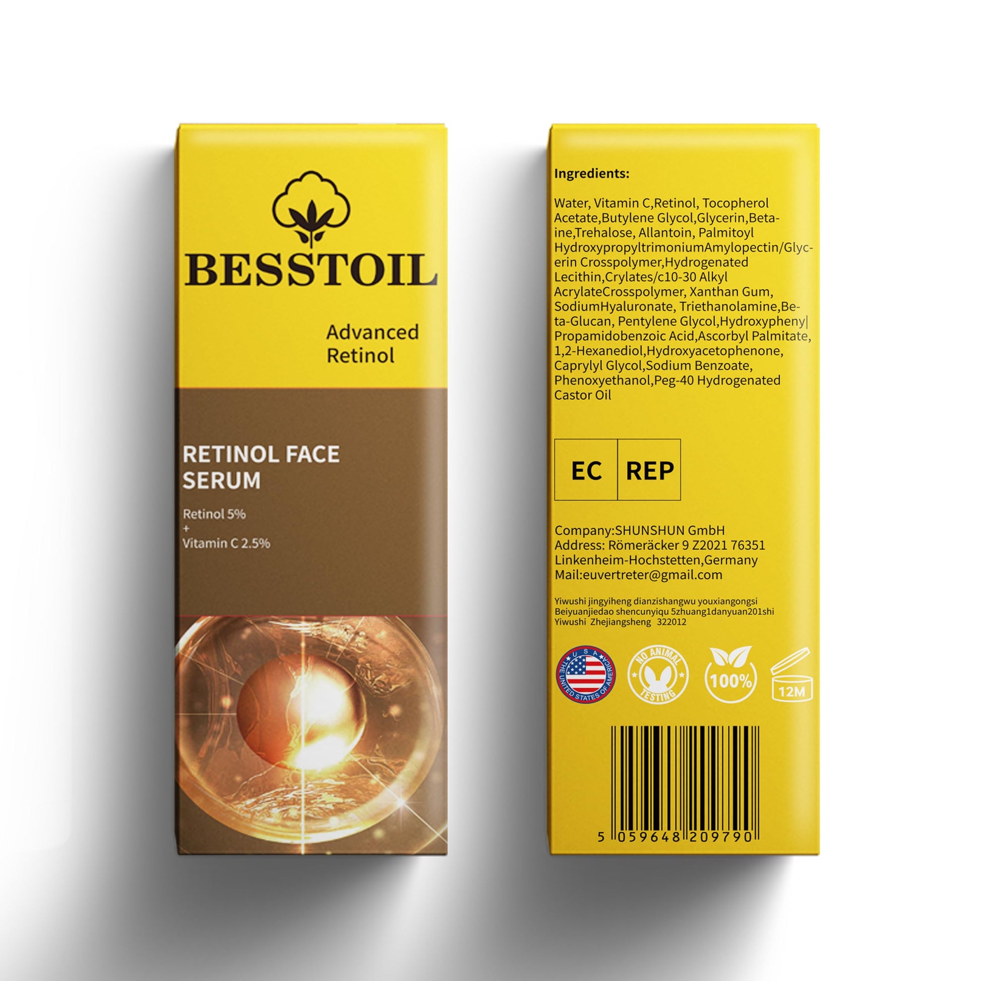 Besstoil Retinol Serum for Face,High Strength Anti-aging Serum with 5% Retinol & 2.5% Vitamin C Outstanding Synthetic Effect to Reduce Wrinkle and Dark Circle (30ml)