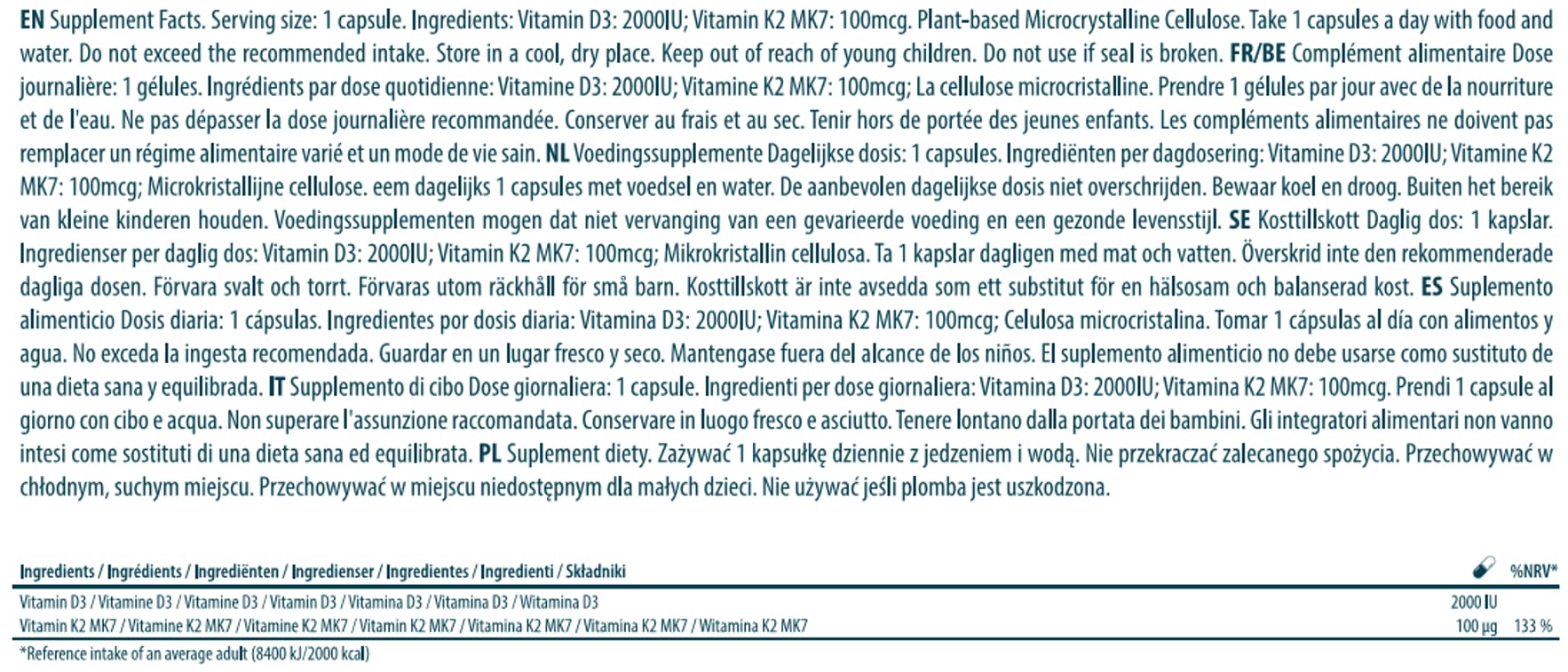 Vitamin D3 2000IU K2 MK7 100mcg Natural Premium Quality 100 Capsules Immune Support Perfect Proportions Maximum AbsorptionMore Info