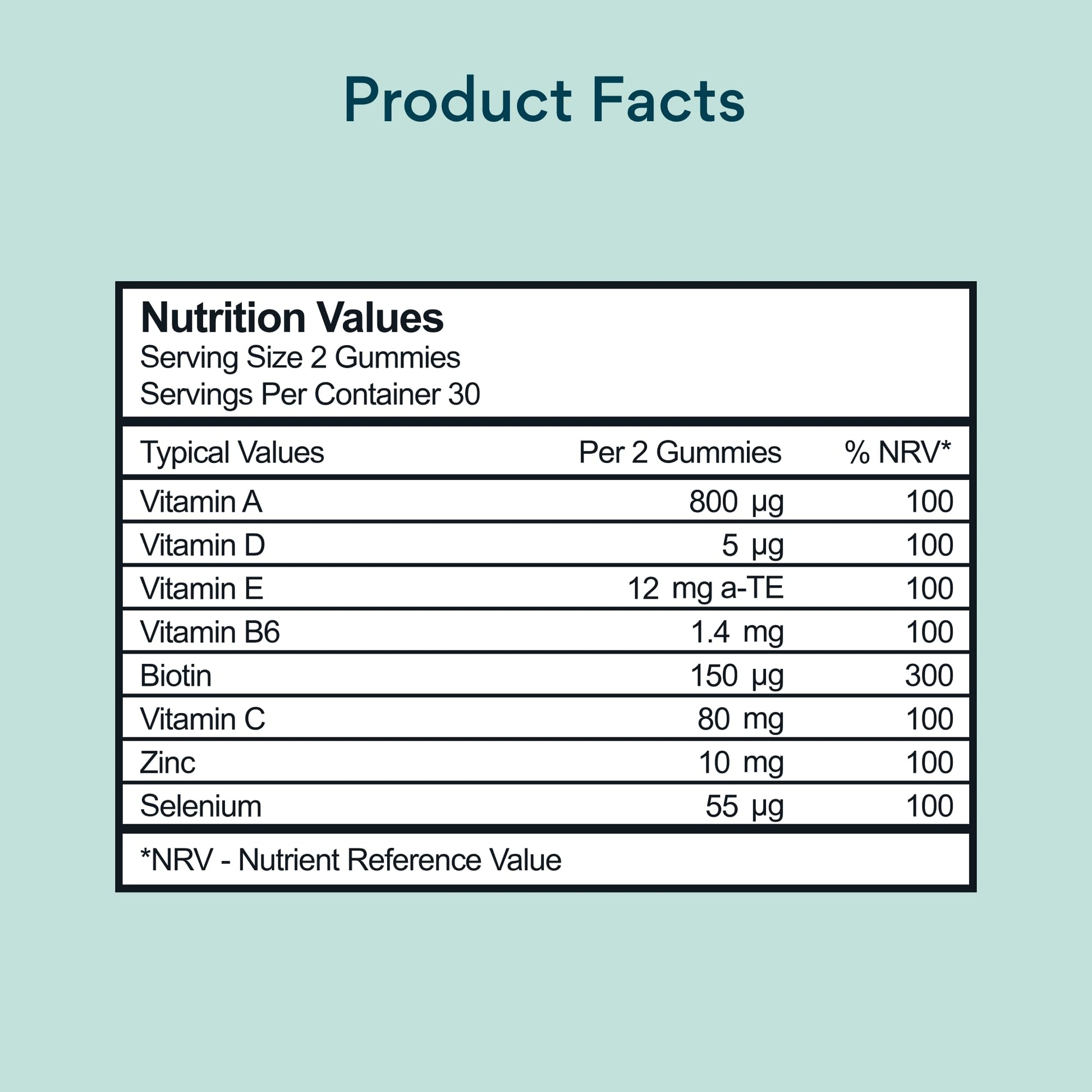 Nourish your beauty from within with our daily Hair, Skin & Nails Gummy, packed with a rejuvenating blend of essential vitamins and minerals.More Info