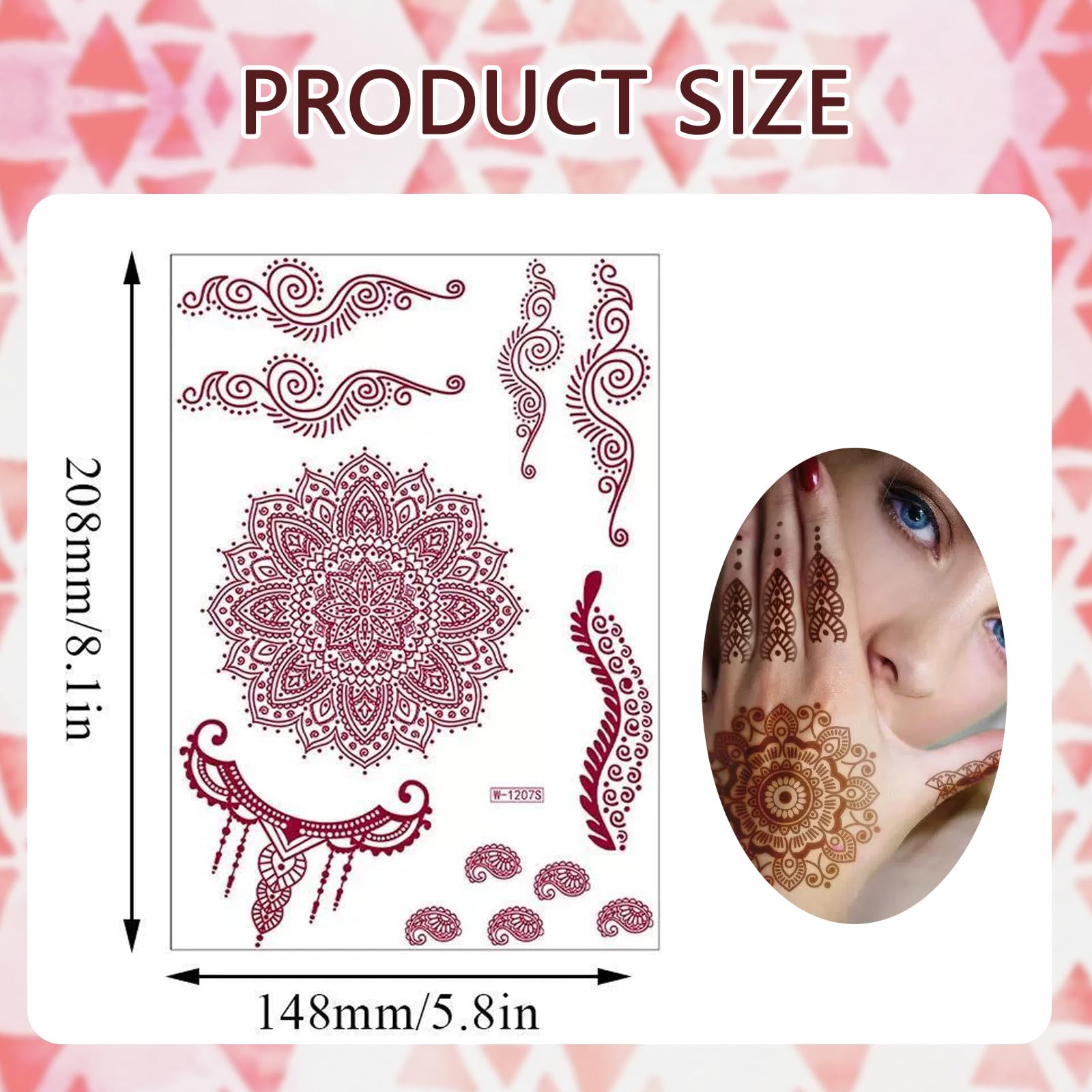Bettinay 9PCS Mehndi Stickers for Hands, Women Girls Temporary Henna stencils sticker