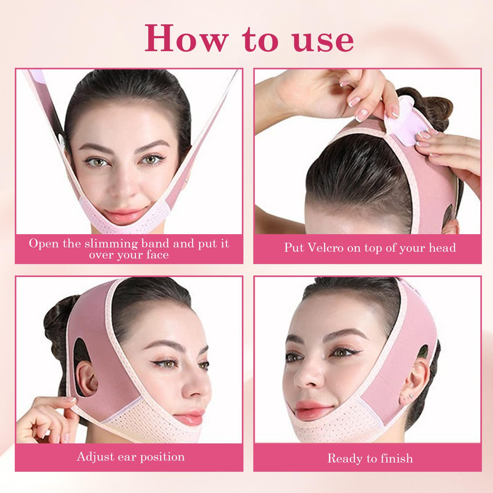 p>The V line face lifting chin strap offers a safe and effective way to lift and tighten your facial muscles, helping you achieve a defined and sculpted look. The strap is made from a breathable and comfortable fabric, ensuring a snug fit without any discomfortOur double chin lift mask contains tightening and hydrating ingredients that work together to improve the elasticity and moisture of your skin. With regular use, you'll notice a firmer and more hydrated complexion, giving you a youthful and refreshed appearance. The gel masks are also formulated to be gentle on the skin, ensuring a pleasant and soothing experience