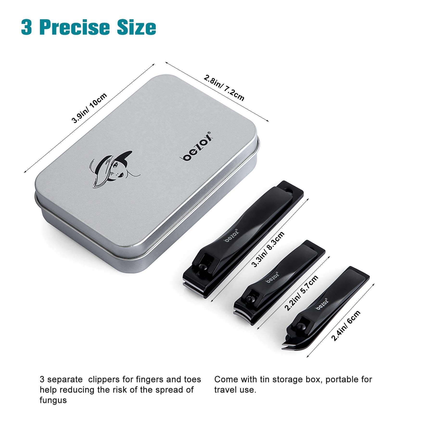 BEZOX Nail Clippers 3 Pcs - Heavy Duty Stainless Steel Straight Toenail Clippers for Thick Fingernail Toenail, Curved Blade Nail Cutters For shape Nail,Slant nail nipper for Trim Nail,Remove Cuticle