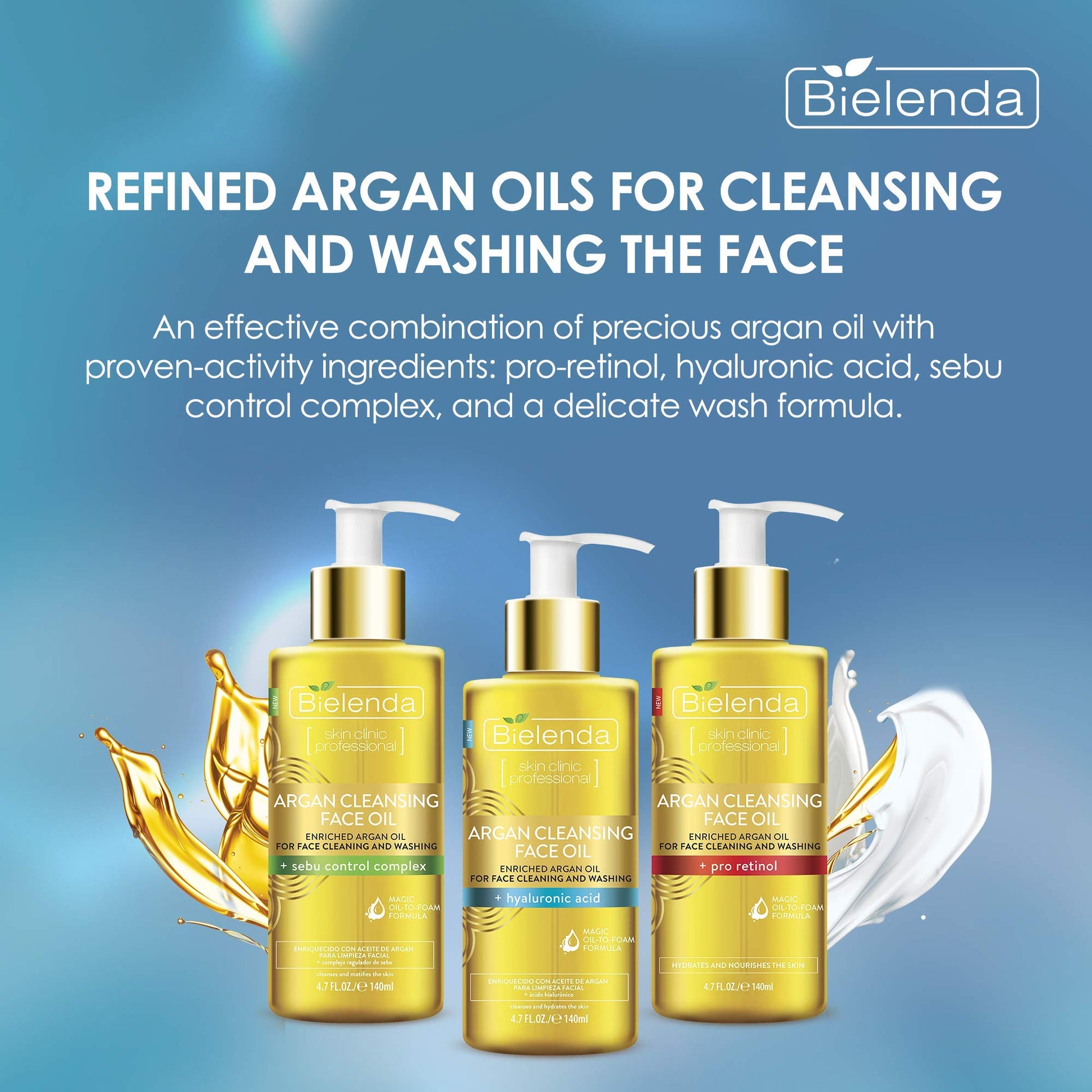 Bielenda Argan Face Oil - Essential Face Treatment Effectively Cleans And Removes Makeup Deeply Moisturizes And Smoothes The Skin Anti-Age Effect - Argan Cleansing Face Oil With Hyaluronic Acid - 140 ml