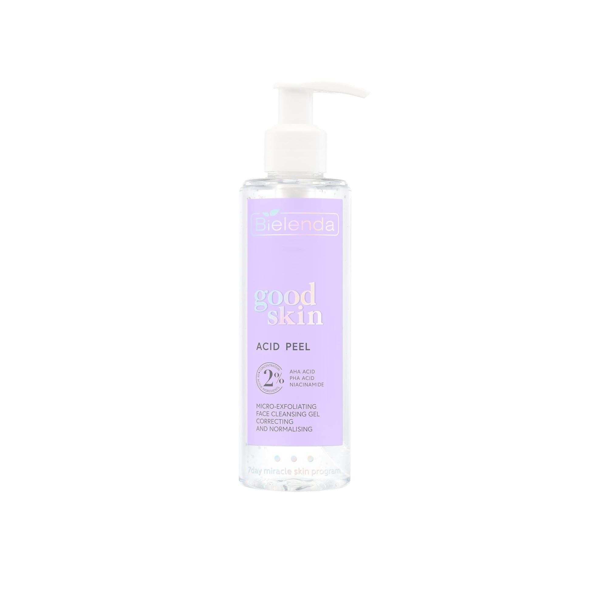 Bielenda Good Skin Acid Peel Korrigierendes und normalisierendes Mikro Peeling Gesichtswaschgel AHA + PHA Säuren, Niacinamid, 195 g